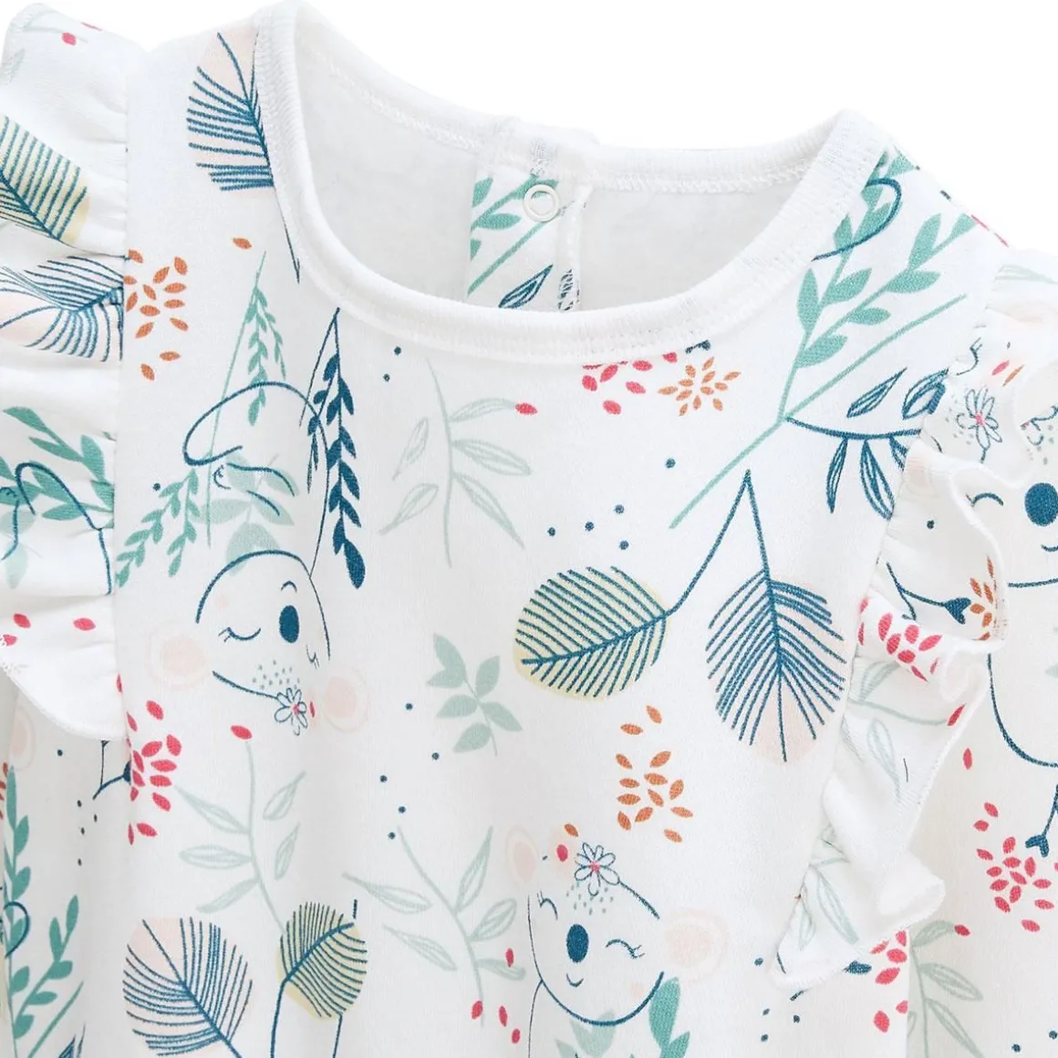 Un Koala fait son apparition sur cette pièce tendance : vos petites filles vont l’adorer ! Le sweat mélange fantaisie et tendresse avec son molleton douillet, son fond écru, ses petits volants et ses touches de rose dragée. Un best à porter sans modération ! Produit labellisé STANDARD 100 by OEKO-TEX ® (BJ020 189402 TESTEX) De jolis petits volants sur les épaules