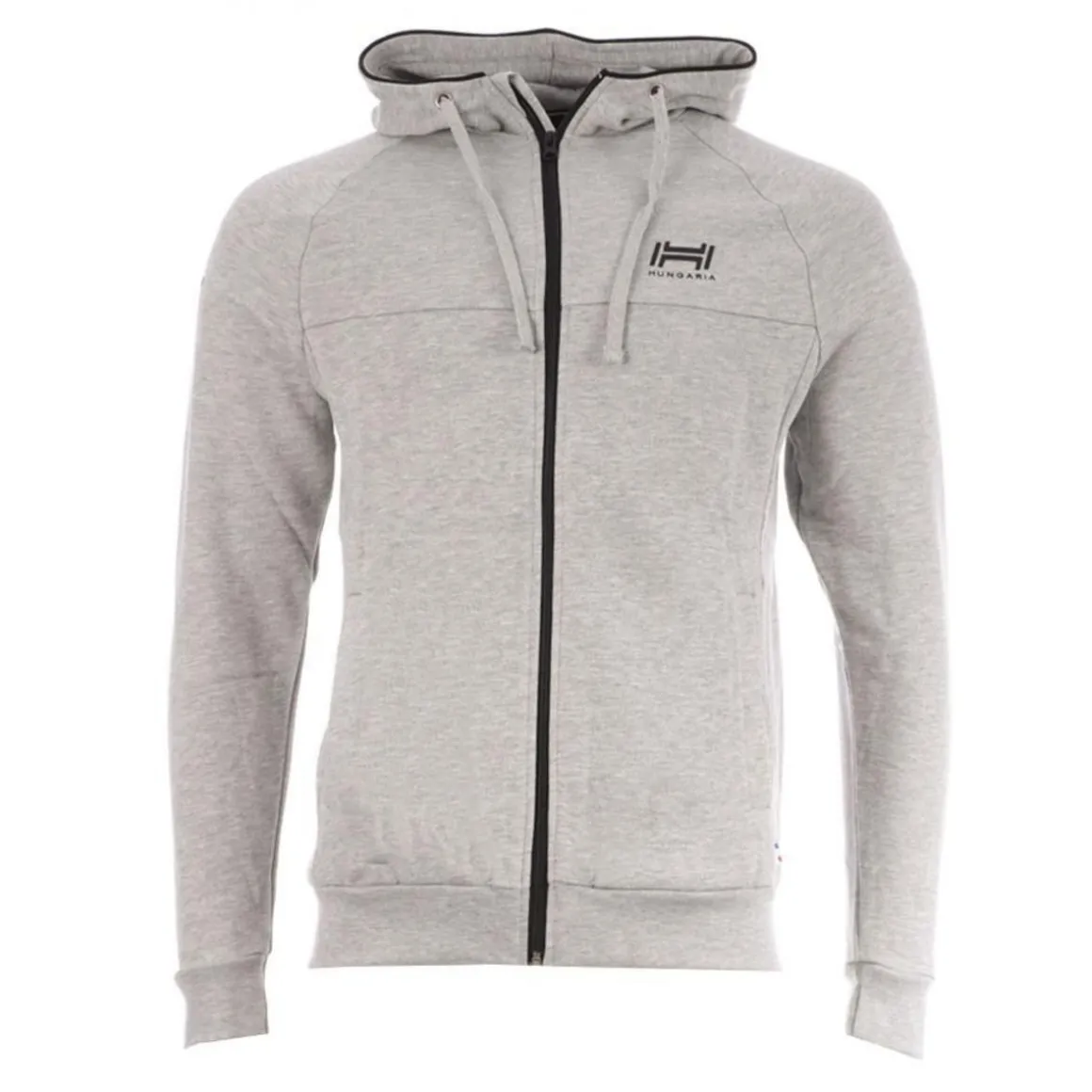 Craquez pour le sweat zippé de la marque HUNGARIA ! Coloris : Gris Manches longues Col capuche Zip sur toute la longueur Logo Imprimé sur la poitrine Composition : 80% Coton, 20% Polyester