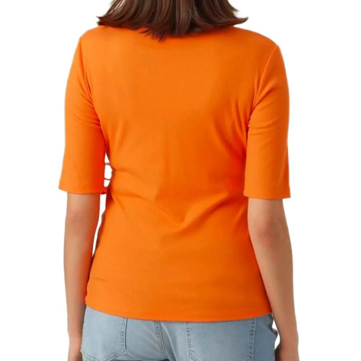 Craquez pour la t-shirt de maternité de la marque MAMALICIOUS !Coloris , Orange Col V Manches courtes Noué sur le coté Composition : 100% Polyester