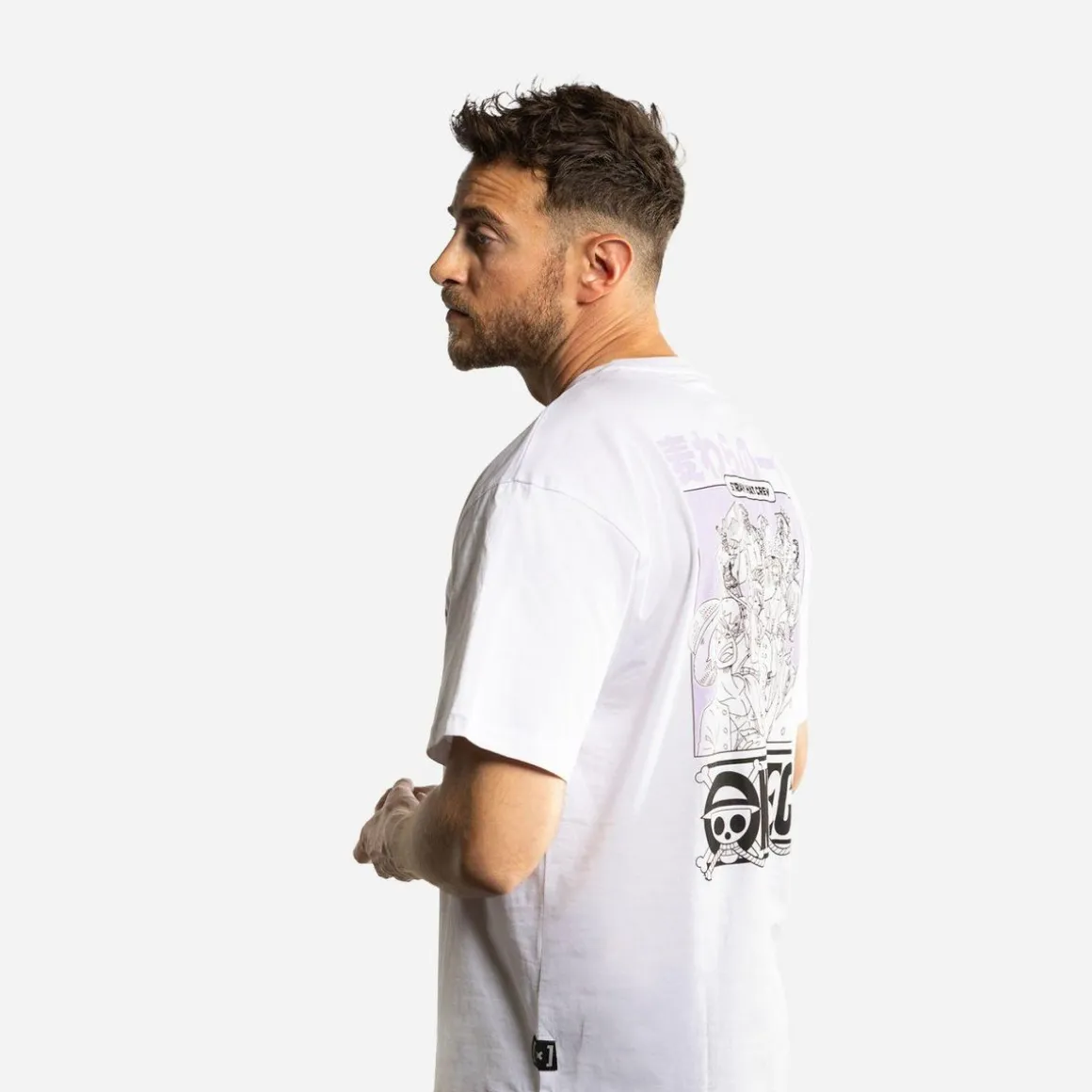 Exprimez votre passion pour l’univers de One Piece avec le t-shirt homme CREW. Ce modèle en blanc, violet et noir se distingue par sa coupe oversize et son bas arrondi, offrant à la fois confort et une allure décontractée. Confectionné en 100 % coton, il est idéal pour les journées ensoleillées ou les moments de détente à la maison. Avec ses manches courtes et son col rond, ce t-shirt est parfait pour tout fan d’anime qui veut afficher son style.