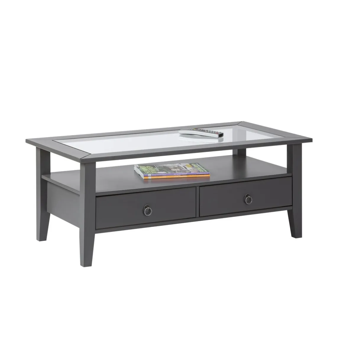 La table basse dispose de 2 tiroirs de rangement