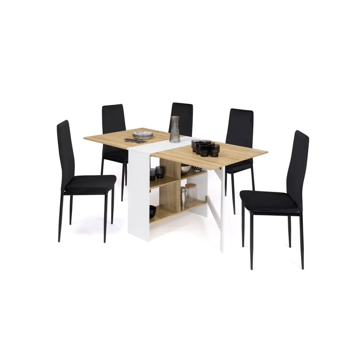 Table repas console pliable Edi plateau naturel et pieds blancs avec rangements