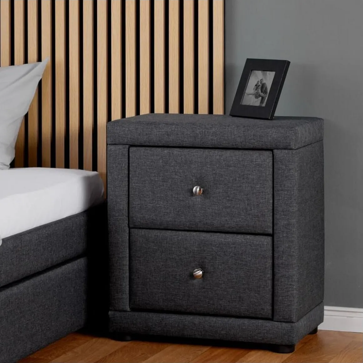 Table de chevet chambre 2 tiroirs gris