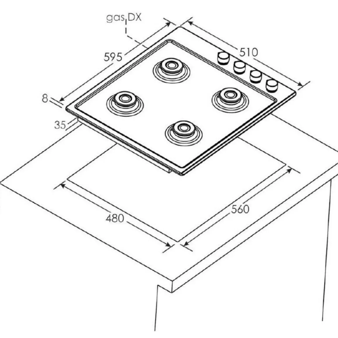 Dim. encastrement (H x L x P en cm) : 4 x 56 x 48.