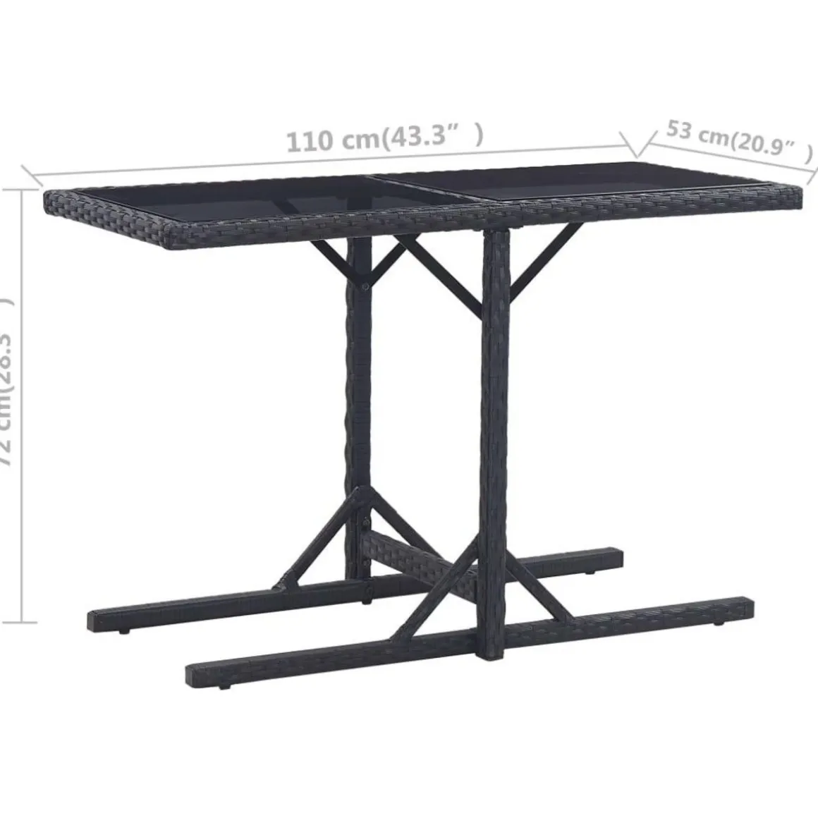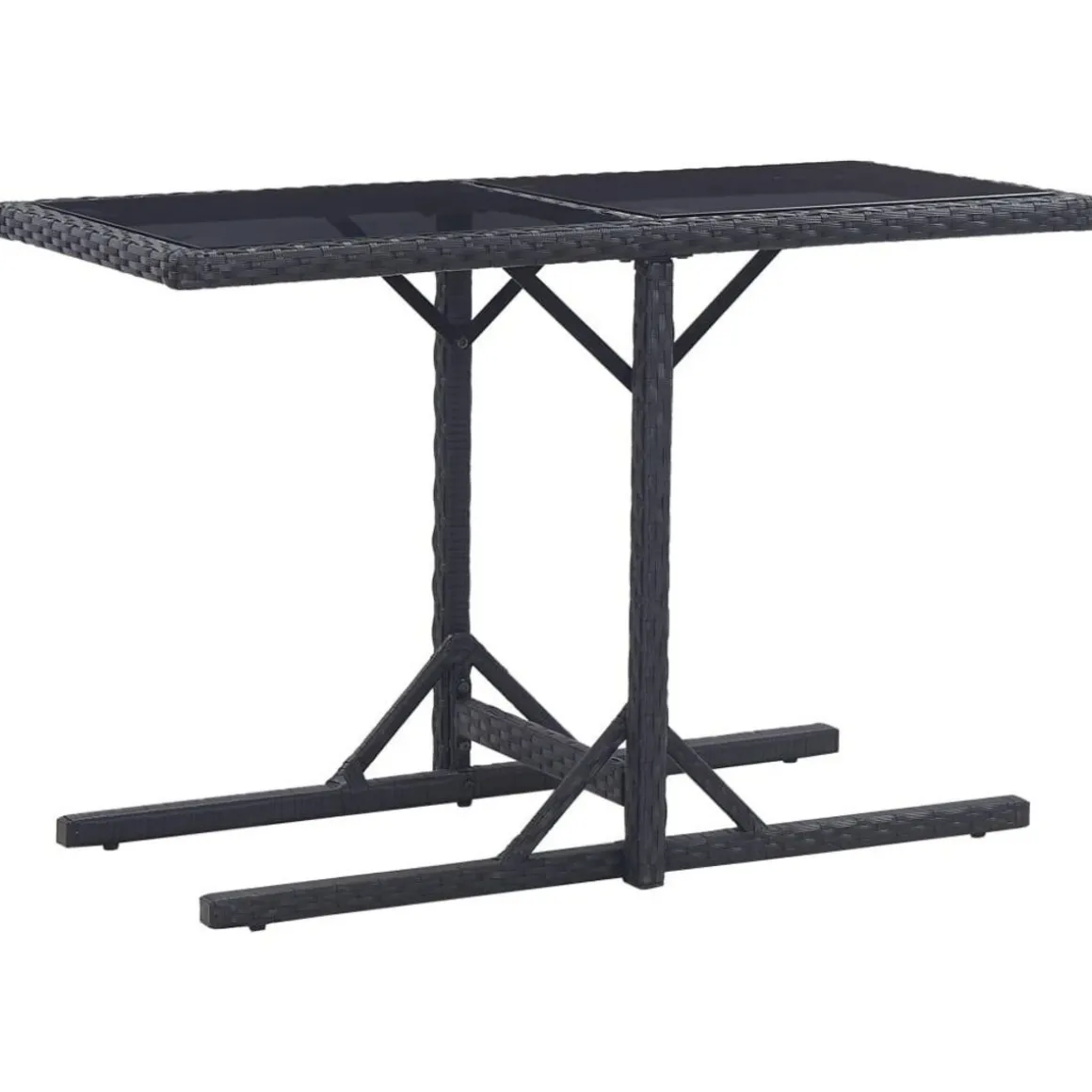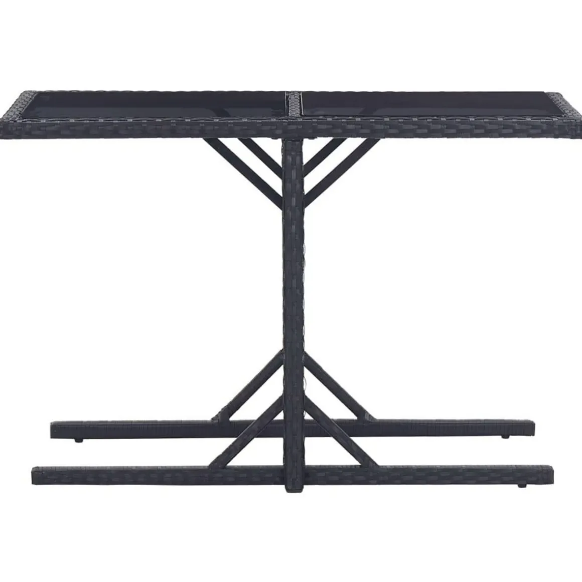 La table de jardin est faite de resine tressee resistante a l’eau et sans entretien, ce qui la rend facile a nettoyer avec un chiffon humide et parfaite pour une utilisation en plein air. Grace a son cadre en acier, cette table est considerablement stable et securisee. De plus, le dessus de table en verre ajoute une touche de luxe a votre espace exterieur.
