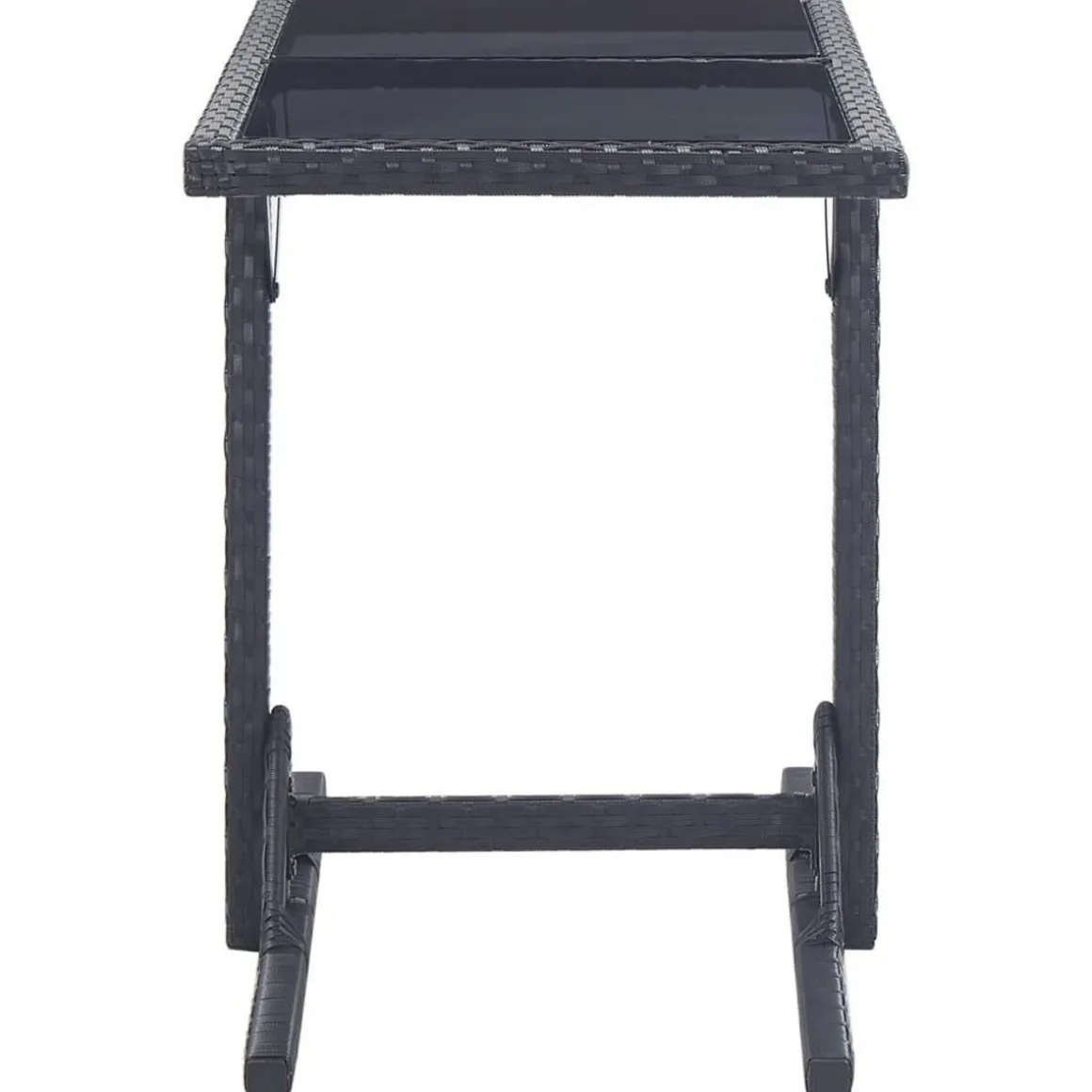 - Materiau : resine tressee + cadre en acier enduit de poudre + dessus de table en verre