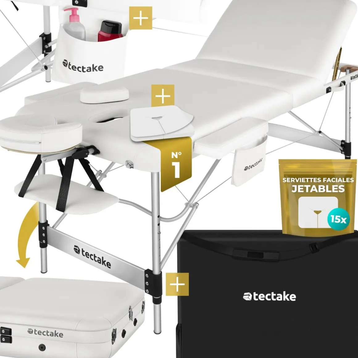 La table de massage 3 zones Ko Tao de tectake combine confort, hygiène et mobilité dans un design bien pensé. Du rembourrage doux aux serviettes visage jetables, avec cette table vous transformez chaque endroit en havre de paix.