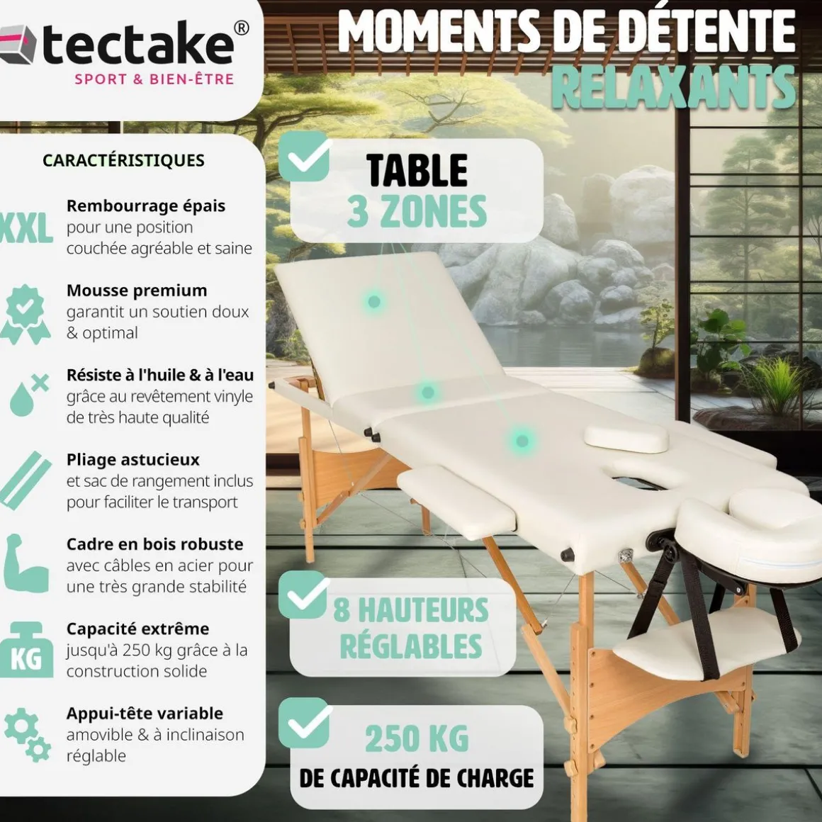 Table de massage : Confort optimal avec trois zones et rembourrage épais