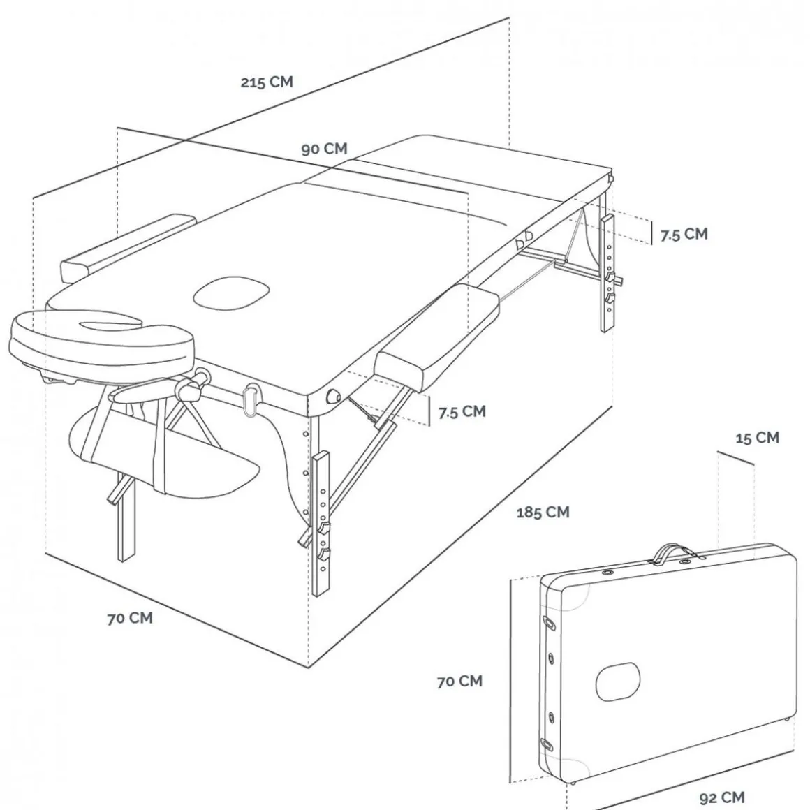La table de massage3 zones en bois Vivezen est conçue aussi bien pour les professionnels que pour les particuliers qui souhaitent faire du massage à domicile, elle combine tous les avantages d’une table fixe et d’une table pliante en un seul produit. La table dispose d’un revêtement en similicuir et d’une belle mousse épaisse en polyuréthane ayant une densité de 24 kg/m3. Confortable et esthétique, elle est d’une qualité professionnelle. Avec une structure en bois de hêtre et des câbles de support en acier, cette table est stable et robuste. Elle peut supporter jusqu’à 250 kg. Facilement transportable grâce à sa housse de transport, elle vous suivra de partout. Se pliant et se dépliant simplement, vous pouvez aussi ajuster la table de massage à votre guise avec un repose-bras antérieur, deux repose-bras latéraux, une têtière ainsi qu’une cavité visage, l’ensemble étant amovible, remplissant les besoins de chacun. La table 3 zones en bois est réglable en hauteur de 63 à 84 cm et dispose d’un dossier qui se relève simplement. La surface allongée sans appuie-tête et accoudoirs est de 185 x 70 cm, et la surface allongée avec appuie-tête et accoudoirs est de 215 x 94 cm. Épaisseur de la table (structure + mousse) : 7.5 cm. Plusieurs coloris disponibles.