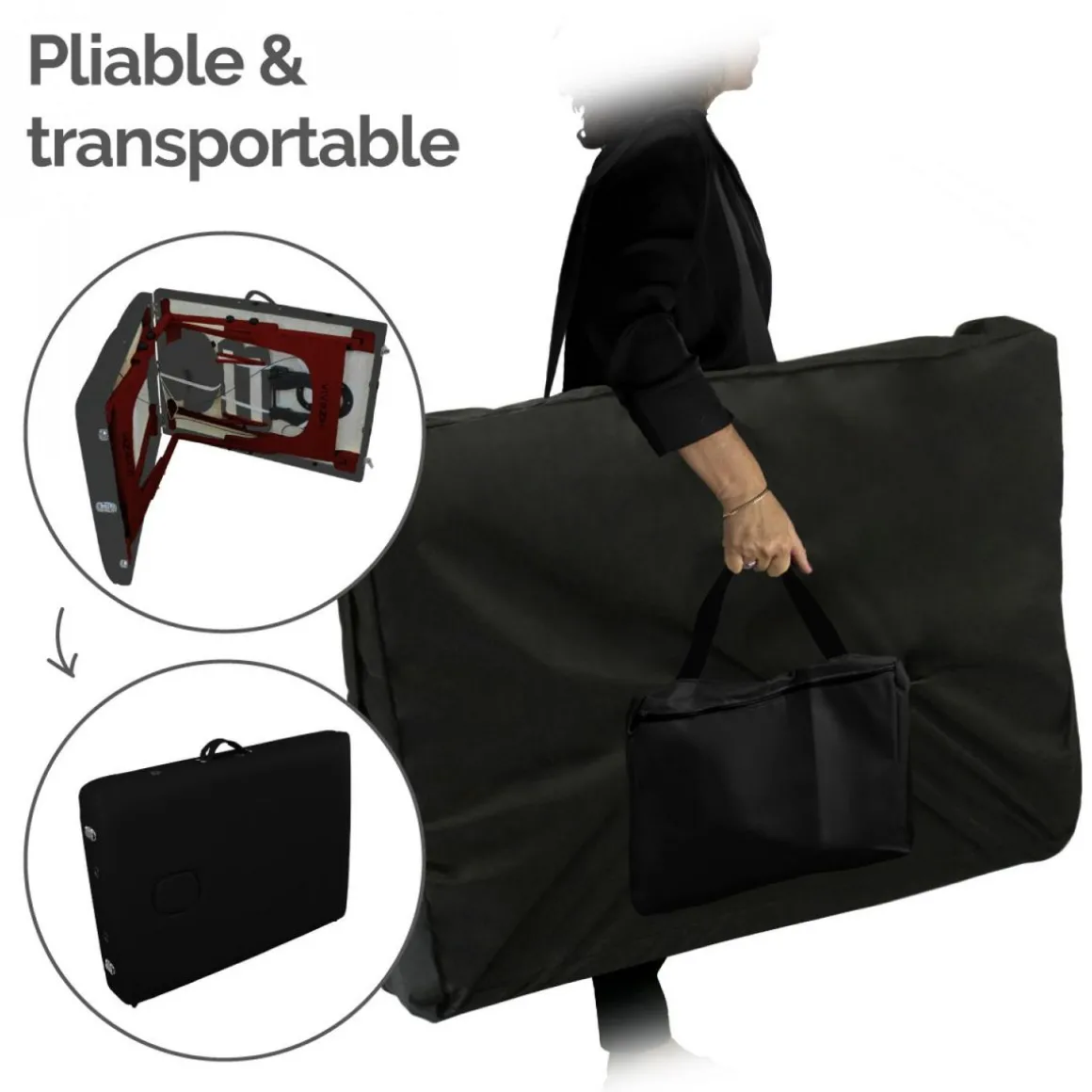 Table de massage pliante 3 zones en bois foncé avec panneau Reiki + Accessoires et housse de transport – Noir