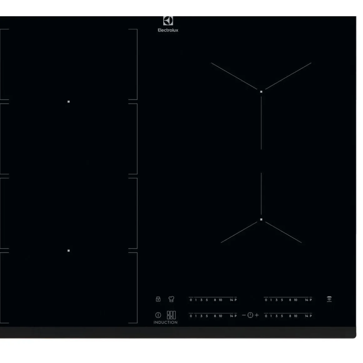 | Foyer modulable | bridge, permet de réunir 2 zones de cuisson en 1 seule de grande surface, cette fonction est idéale pour une cocotte ovale. | |