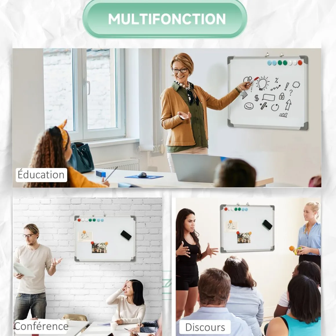 – Surface magnétique en acier laquée blanc qui vous permettra un effanage à sec optimal sans laisser de trace
