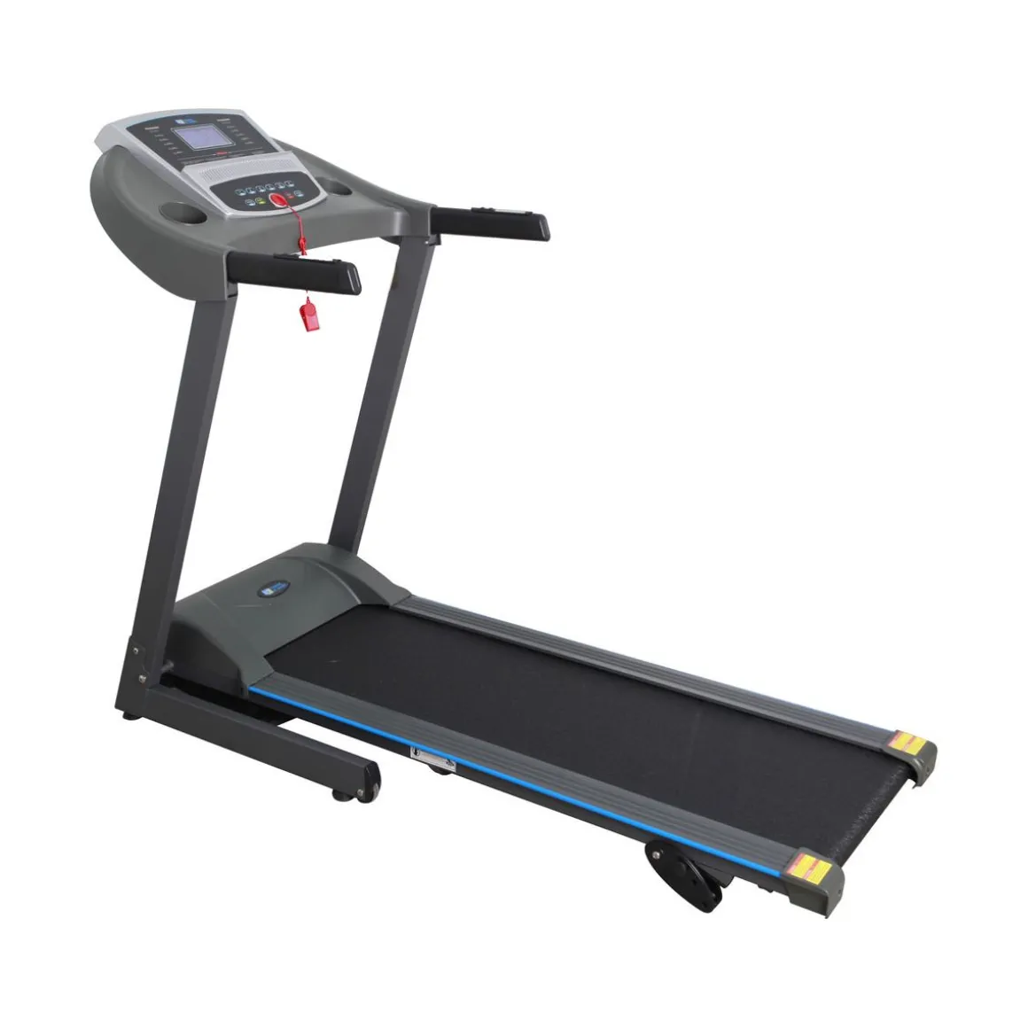 Pour plus de confort, une clé de sécurité est fournie et permet la mise en service ainsi que l’arrêt de la machine. Descriptif : – Tapis de course d’intérieur – Structure en acier – Coloris gris/noir – Avec écran d’affichage – Jusqu’à 16 km/h – Différents programmes personnalisables – Indications IMC – Porte-gobelets inclus – Clé de sécurité mise en service/arrêt – Poids produit : 43 kg.