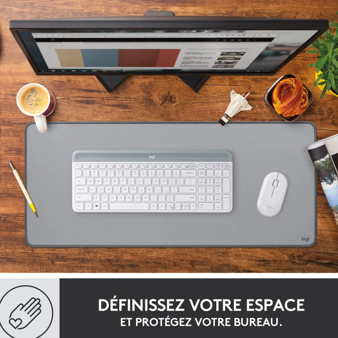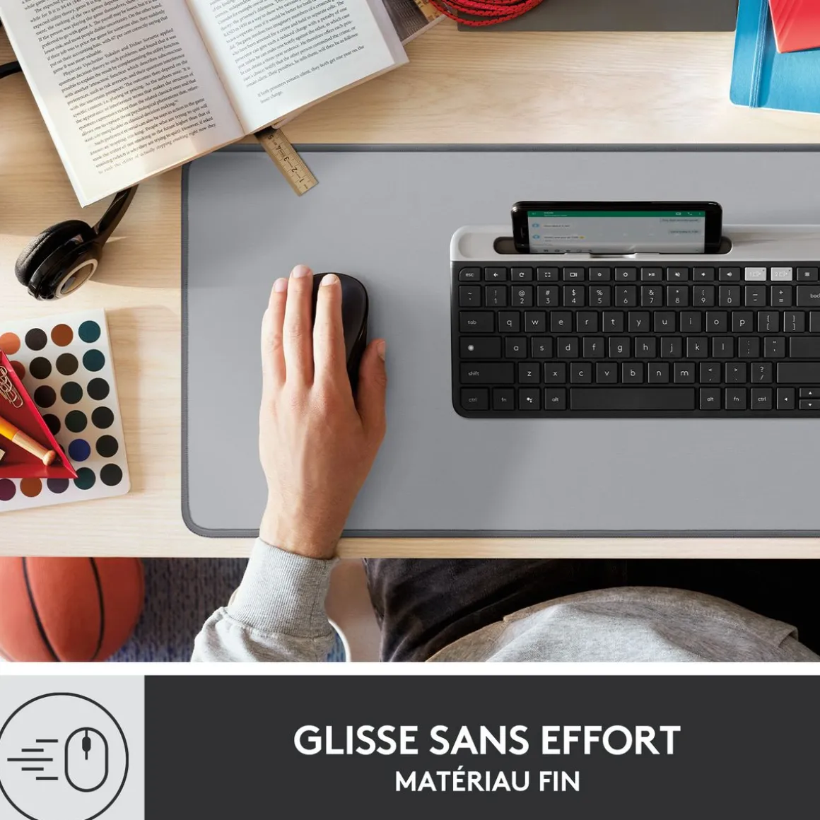 Logitech Desk Mat est un sous-main coloré et antidérapant doté d’une conception résistante aux éclaboussures qui vous permet de trouver la glisse qui vous convient et de définir votre style, tout en protégeant votre bureau.