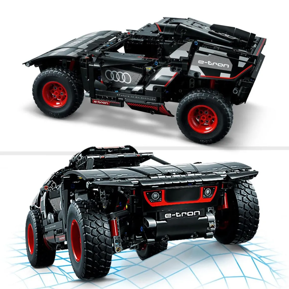 En construisant, ils explorent la voiture électrique originale, construite par Audi pour résister aux conditions exigeantes du Rallye Dakar. Ce modèle regorge de détails réalistes tels que les suspensions individuelles sur les 4 roues et inclut un nouvel élément de roue Technic créé spécialement pour refléter le design de l’Audi originale. L’application CONTROL+ permet de tester la voiture de rallye avec les commandes marche avant, marche arrière et direction.