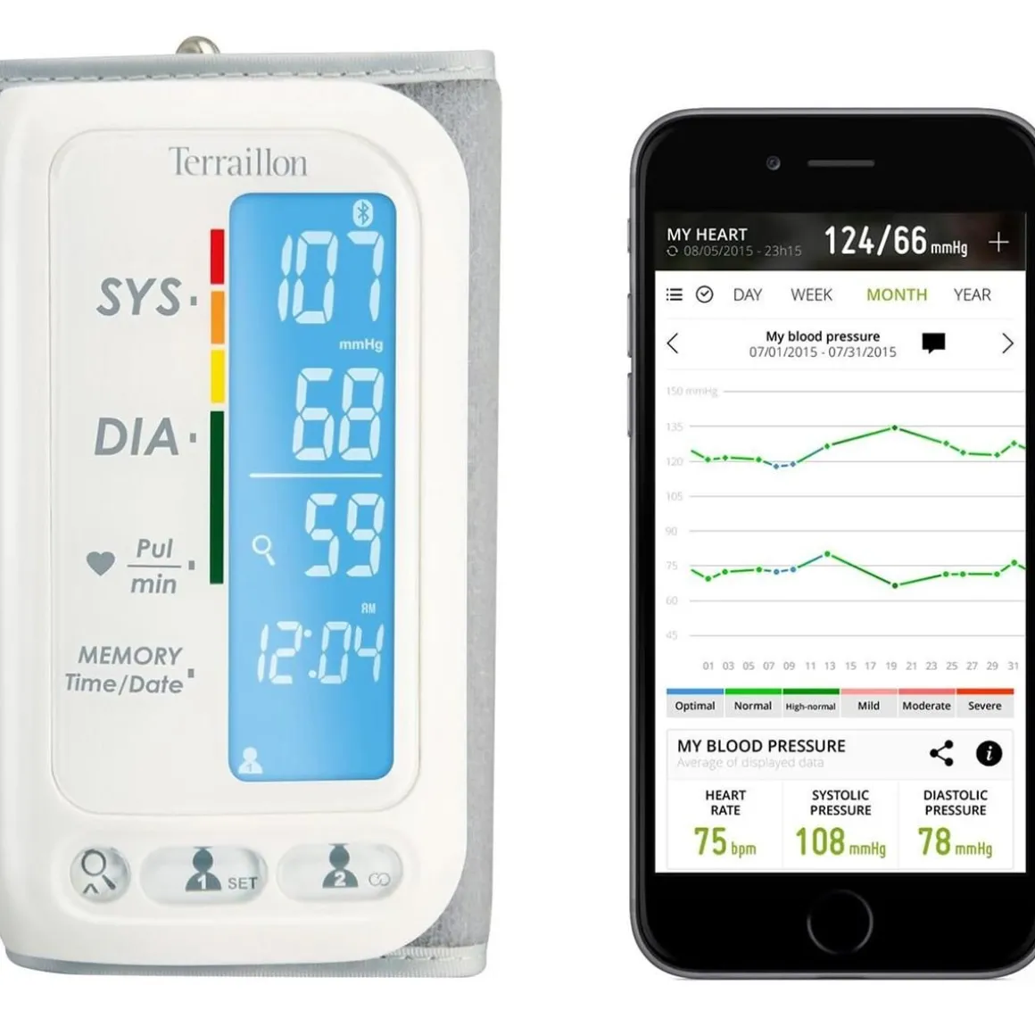 TensioSmart est un tensiomètre connecté qui vous aide à suivre facilement votre tension artérielle et votre fréquence cardiaque au niveau du bras. Il suffit d’appuyer sur le bouton pour lancer l’analyse et voir les résultats de votre pression artérielle sur le grand écran LCD rétroéclairé. Pratique si vous n’avez pas votre smartphone avec vous ou si vous souhaitez laisser quelqu’un d’autre récupérer les données, grâce aux 60 mémoires intégrées. Synchronisez vos données avec l’application MyHealth où vous pouvez suivre vos progrès et d’obtenir des conseils gratuits pour les atteindre.
