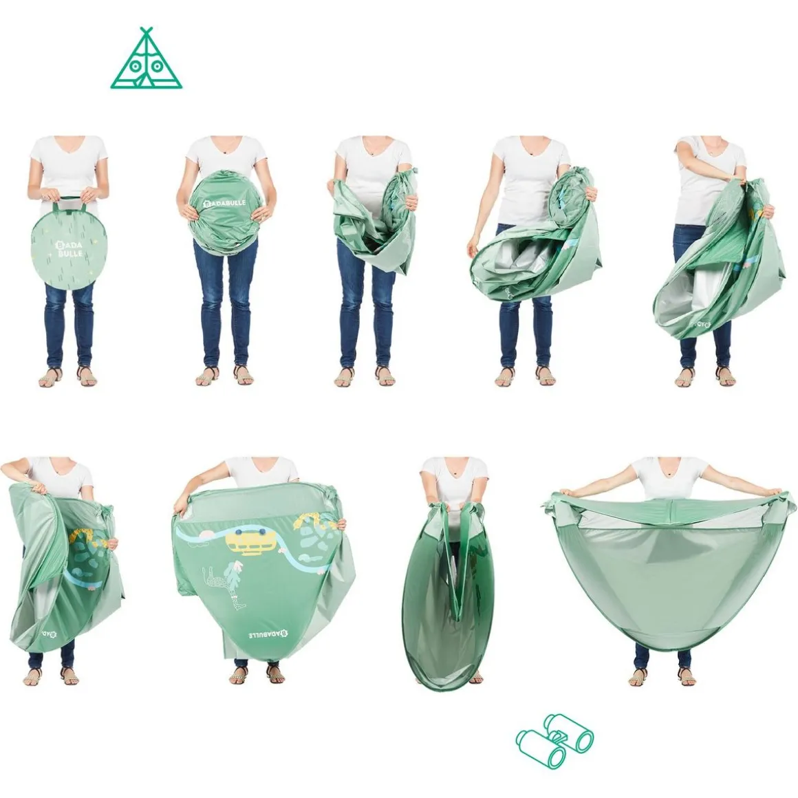 • Maxi format dépliée (L.125 x l.100 x h.85 cm) et encombrement mini une fois repliée (42 cm diamètre)