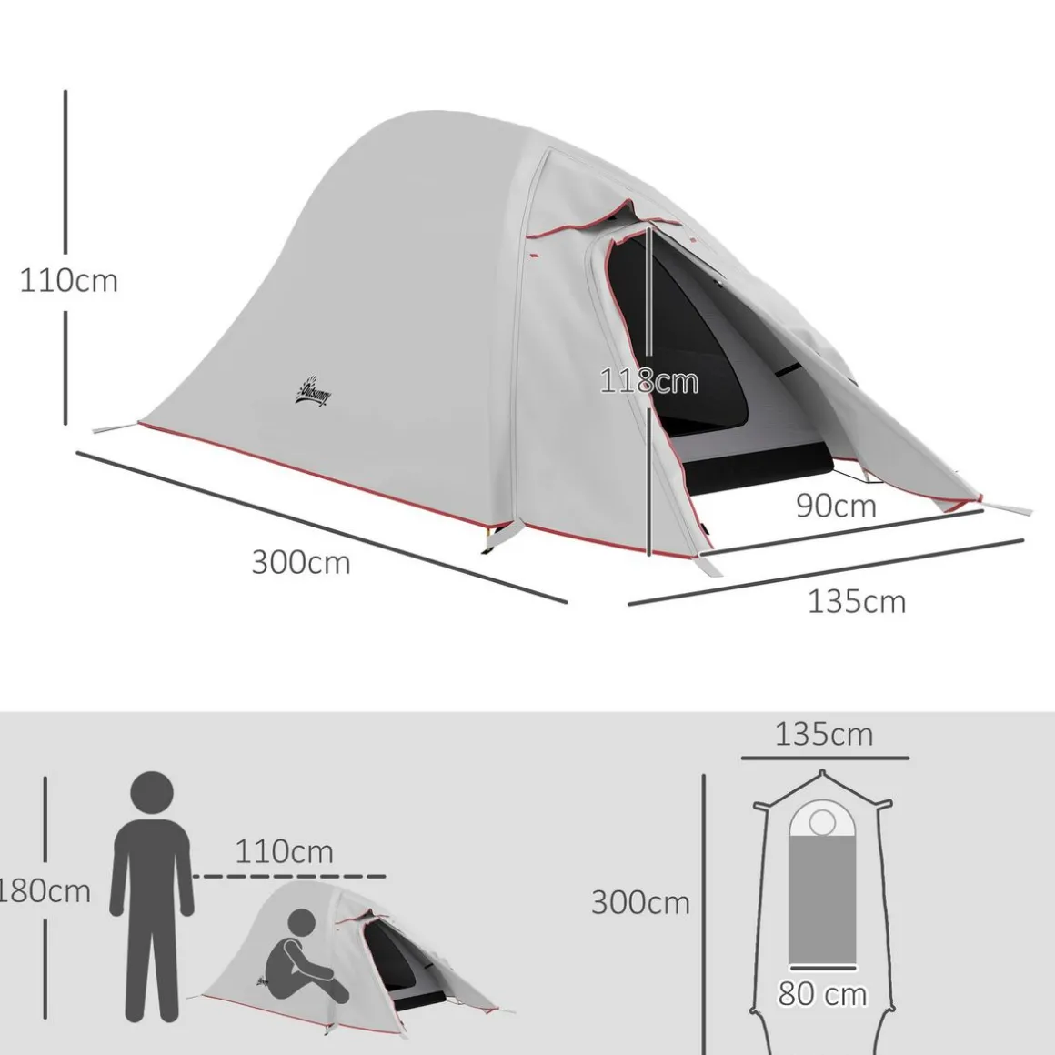 – Le double toit extérieur offre de l’ombre et une protection contre la pluie de 2000 mm