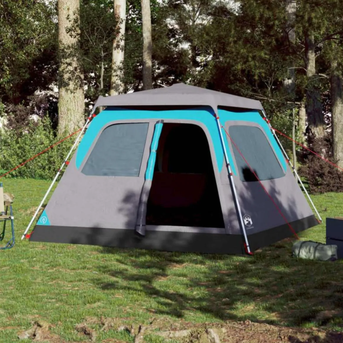 Cette tente familiale au look moderne vous protège des intempéries et offre un endroit confortable pour des aventures partout. Conception imperméable à l’eau tout autour : cette tente de camping, fabriquée en polyester avec un revêtement PU, est imperméable et résistante au vent. Les coutures étanches empêchent efficacement l’infiltration de l’eau de pluie, tandis que le tapis de sol robuste contribue à maintenir l’intérieur sec et confortable.Système de dégagement rapide : installez la tente sans effort grâce au système de dégagement rapide ! Posez la tente, étendez les poteaux pré-assemblés jusqu’à ce qu’ils s’enclenchent, et le tour est joué !Double-toit amovible : le double toit amovible peut être fixé au sommet de la tente pour une protection contre les intempéries et plus d’intimité.Accès pratique au cordon électrique : le E-port vous permet de connecter facilement une rallonge à votre tente à partir d’une source d’alimentation externe.Légère et portable : le design pliable et léger vous permet d’emballer facilement la tente et de la ranger dans le sac de transport inclus pour la transporter facilement. Attention :Tenir toutes les flammes et les sources de chaleur loin du tissu de ce produit.