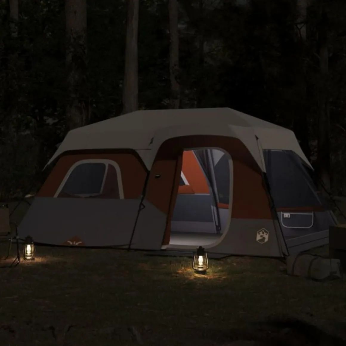 Cette tente familiale au look moderne vous protège des intempéries et offre un endroit confortable pour des aventures partout. Conception imperméable à l’eau tout autour : cette tente de camping, fabriquée en polyester avec un revêtement PU, est imperméable et résistante au vent. Les coutures étanches empêchent efficacement l’infiltration de l’eau de pluie, tandis que le tapis de sol robuste contribue à maintenir l’intérieur sec et confortable.Système de dégagement rapide : installez la tente sans effort grâce au système de dégagement rapide ! Posez la tente, étendez les poteaux pré-assemblés jusqu’à ce qu’ils s’enclenchent, et le tour est joué !Éclairage LED : cette tente dispose de lumières LED sur les poteaux du plafond avec trois modes d’éclairage : lumière forte, lumière faible et lumière de nuit. Elles peuvent être alimentées par une banque d’alimentation ou des batteries 4D (toutes deux non incluses). Le tissu diffusant la lumière assure un éclairage homogène dans toute la tente, créant ainsi un environnement confortable et bien éclairé pour toutes vos aventures de camping.Accès pratique au cordon électrique : le E-port vous permet de connecter facilement une rallonge à votre tente à partir d’une source d’alimentation externe.Double-toit amovible : le double toit amovible peut être fixé au sommet de la tente pour une protection contre les intempéries et plus d’intimité. Attention :Tenir toutes les flammes et les sources de chaleur loin du tissu de ce produit.