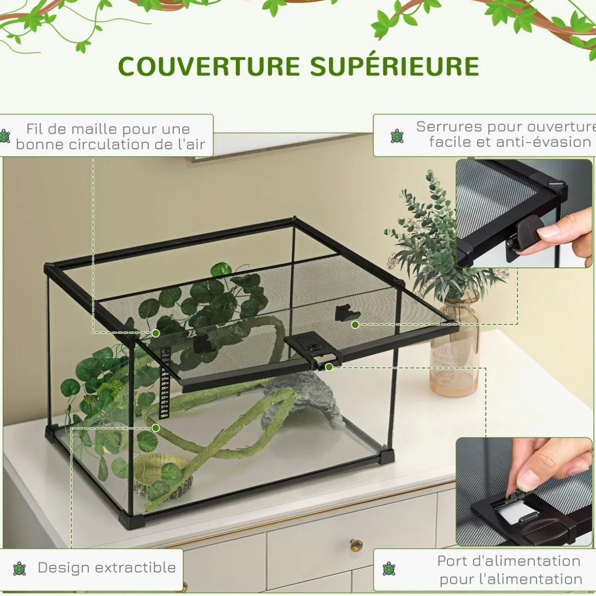 – Terrarium à insecte avec couvervle supérieure doté des serrures pour empêcher les animaux de s’échapper,