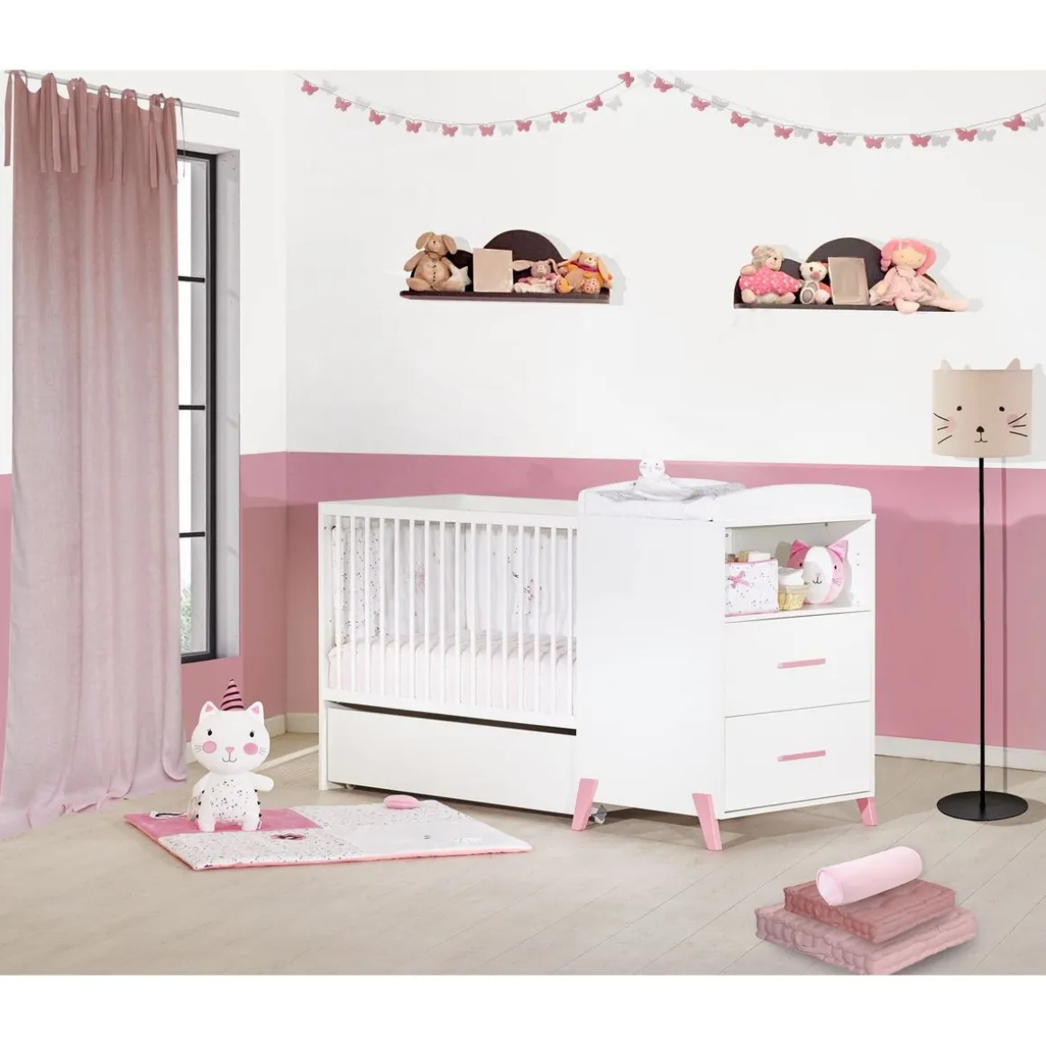 – Côtés en panneaux de particules mélaminés décor blanc.