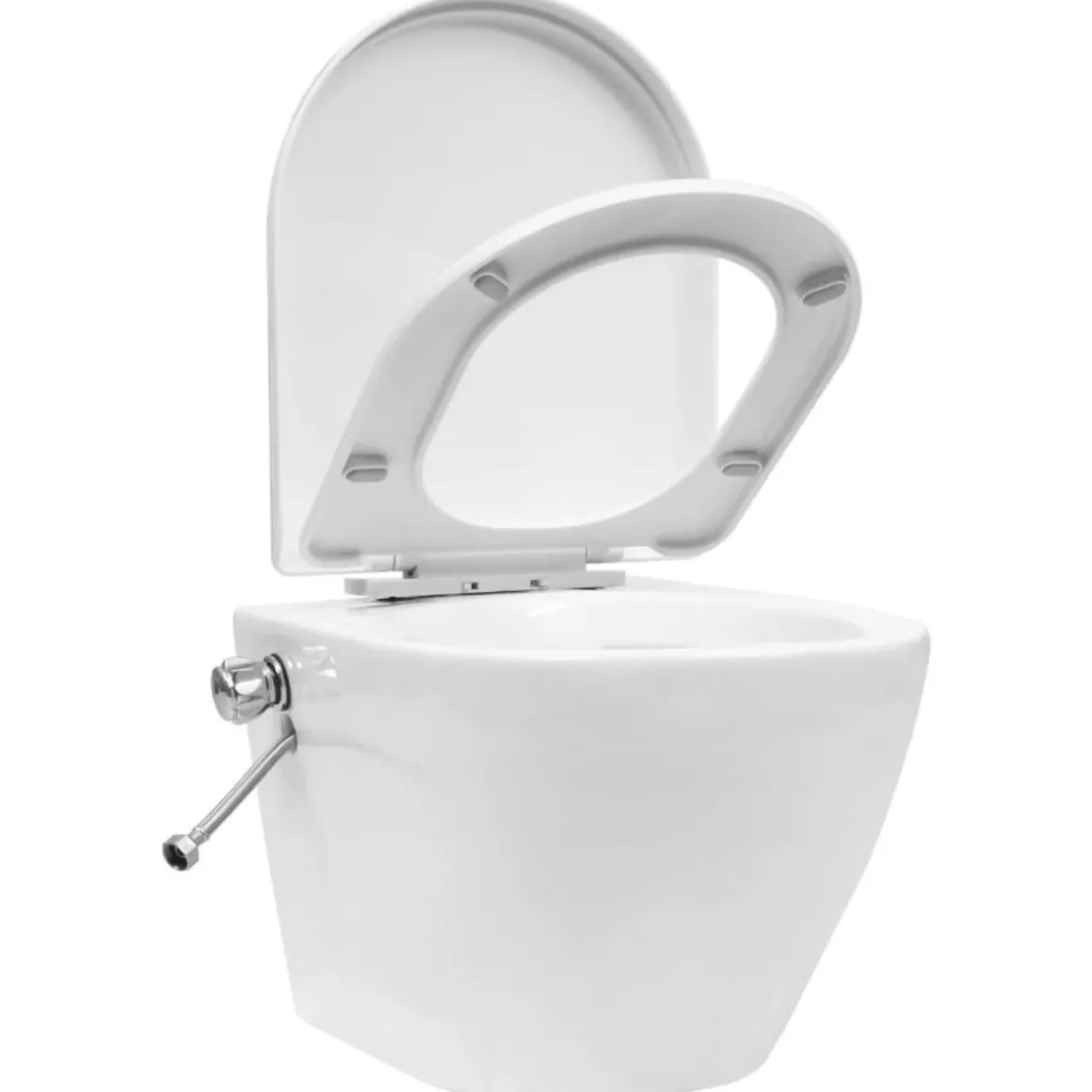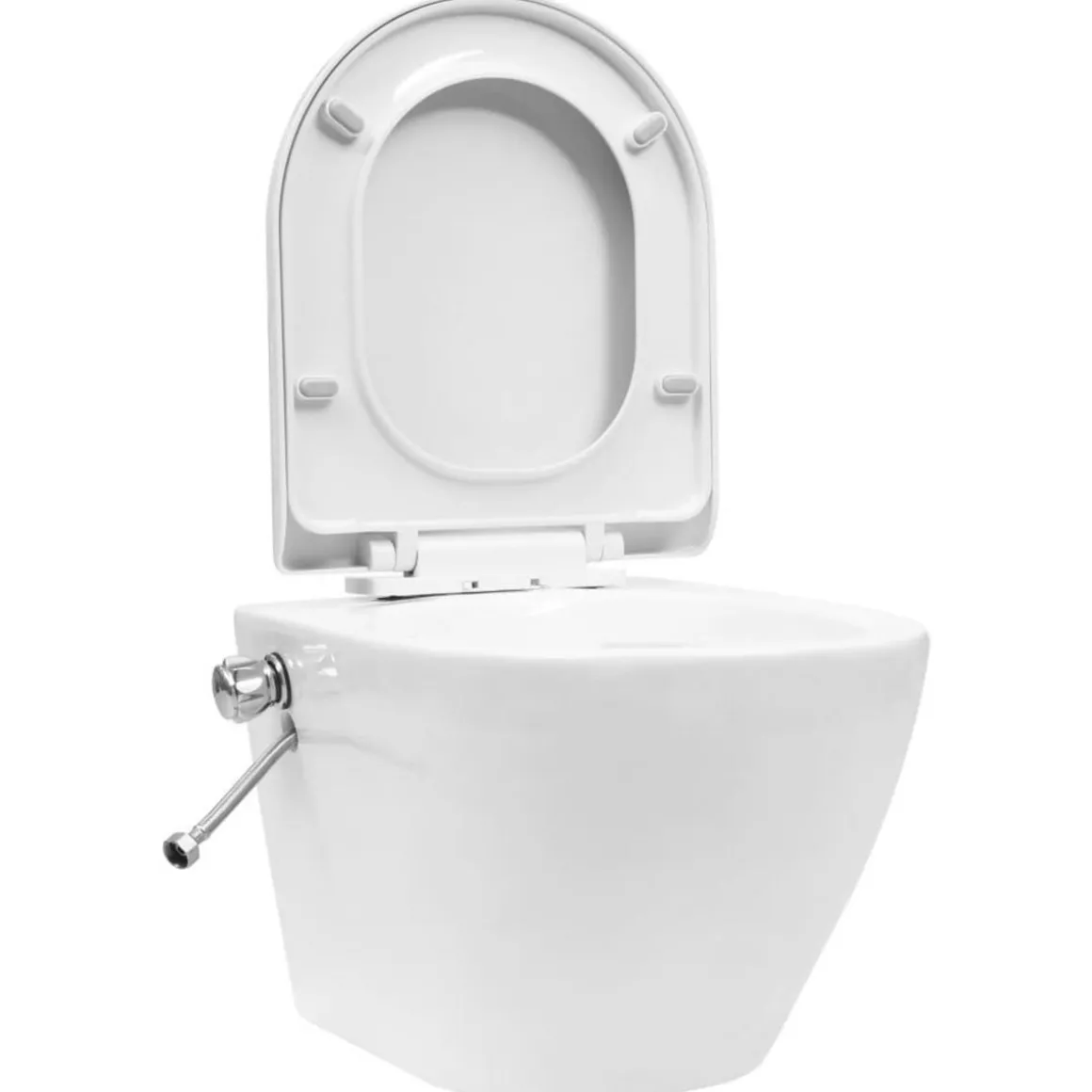 Cette toilette avec fonction de rinçage sans rebord a une surface en ceramique particulierement durable et facile d’entretien qui simplifie le nettoyage. Elle garantit egalement des annees d’utilisation. Le calcaire et les contaminants ne collent pas facilement a la surface anti-salissure. Le mecanisme de fermeture en douceur empeche le couvercle de la toilette de tomber. De plus, la toilettes a une buse de bidet pour nettoyer les fesses et les zones intimes des femmes. Le materiel de montage est entierement dissimule, donnant un look elegant et sans couture.
