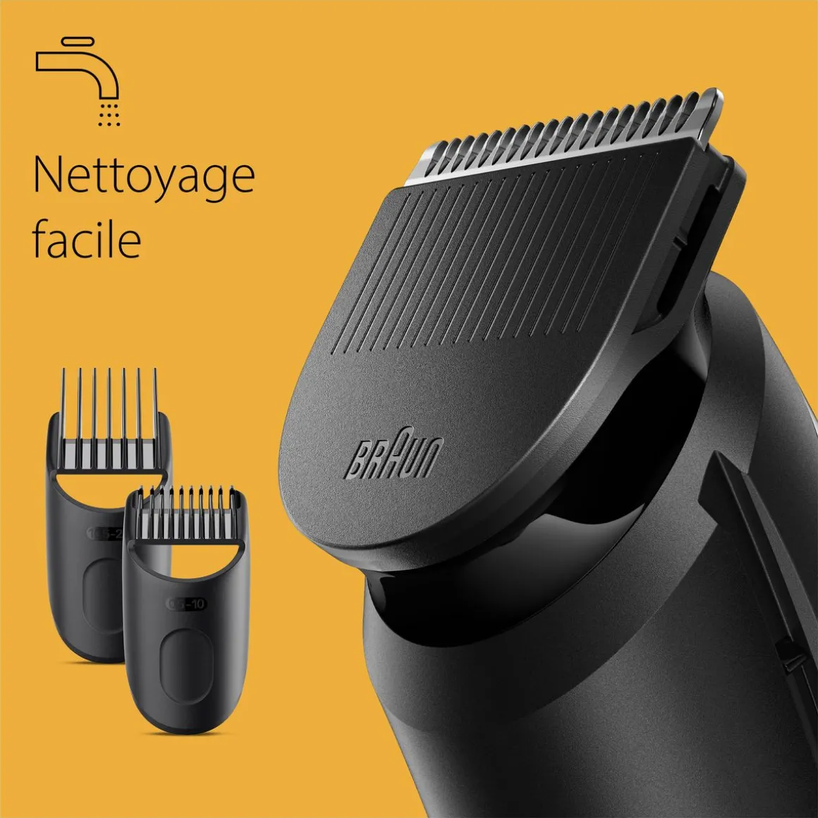 La tondeuse barbe BT3411 de BRAUN en gris offre une autonomie de 50 minutes pour un temps de charge de 6 heures. Elle propose 20 réglages de coupe allant de 0,5 à 20 mm pour un résultat précis et personnalisé. Elle est pratique et facile à utiliser pour une coupe de barbe professionnelle à domicile. Elle est fournie avec1 tondeuse barbe et cheveux, 1 sabot de précision pour barbe (0,5 à 10 mm), 1 sabot de précision pour cheveux (10,5 à 20 mm) et 1 brosse de nettoyage