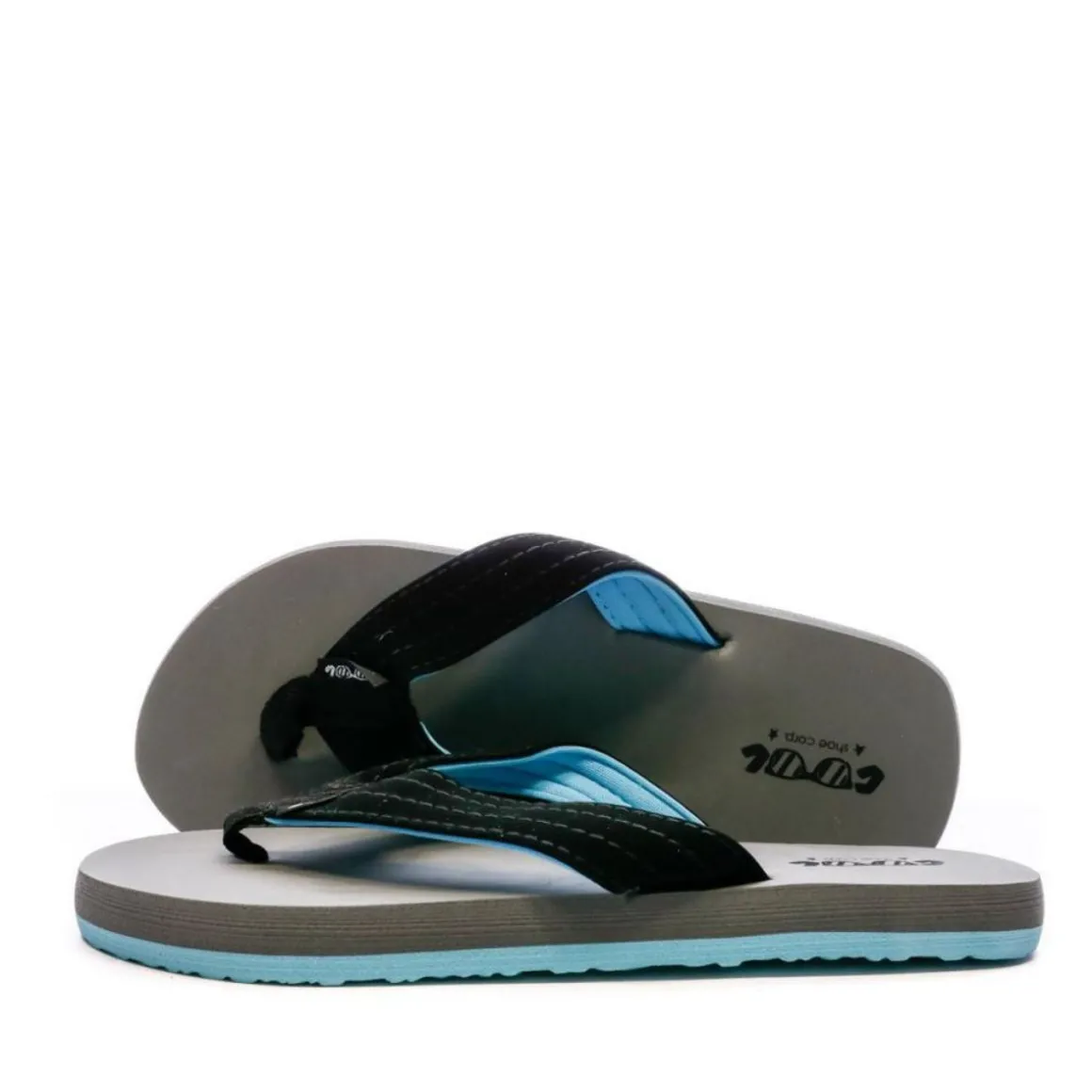 Tongs garçon de la marque Cool Shoe ! Coloris : Gris et Noir Entre-doigt en nylon tissé Sangle en toile avec doublure jersey Semelle EVA