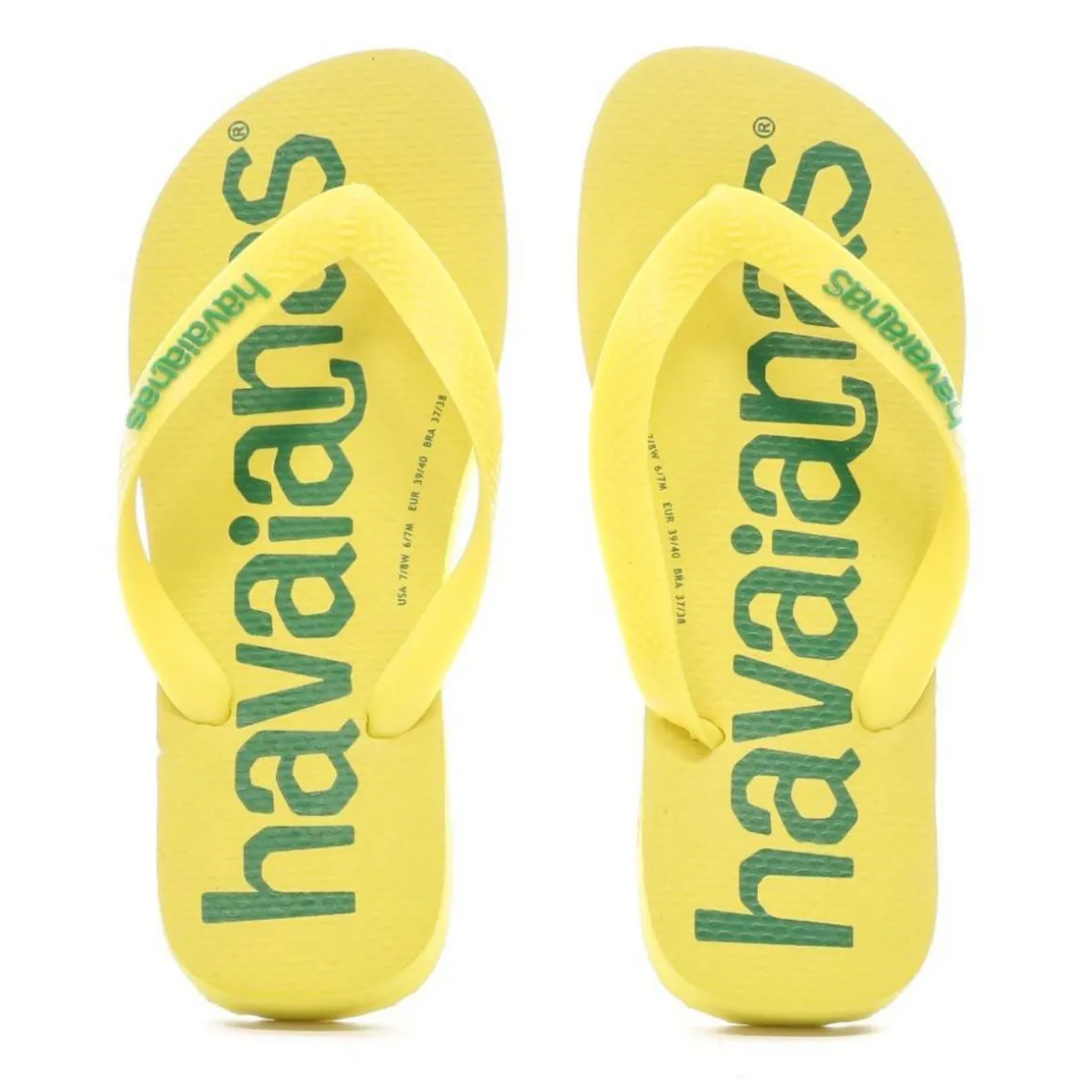 Optez pour ces tongs de la marque Havaianas ! Coloris : jaune, vert Semelle synthétique Bride plastique