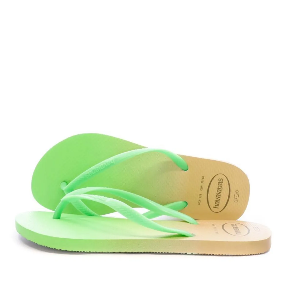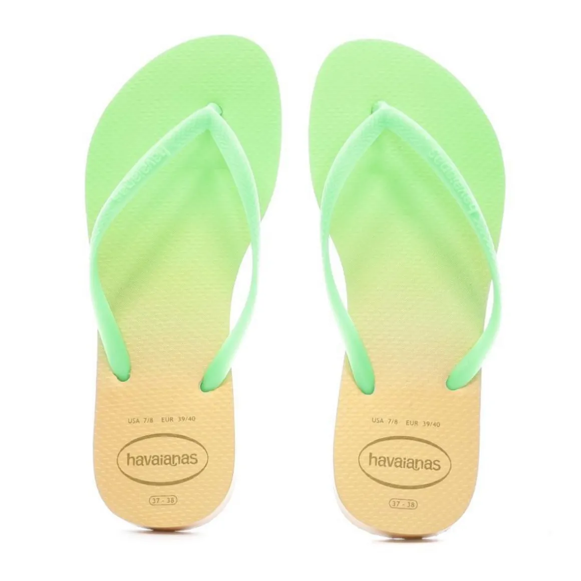 Optez pour ces tongs de la marque Havaianas ! Coloris : orange, vert Semelle synthétique Bride plastique Effet dégradé