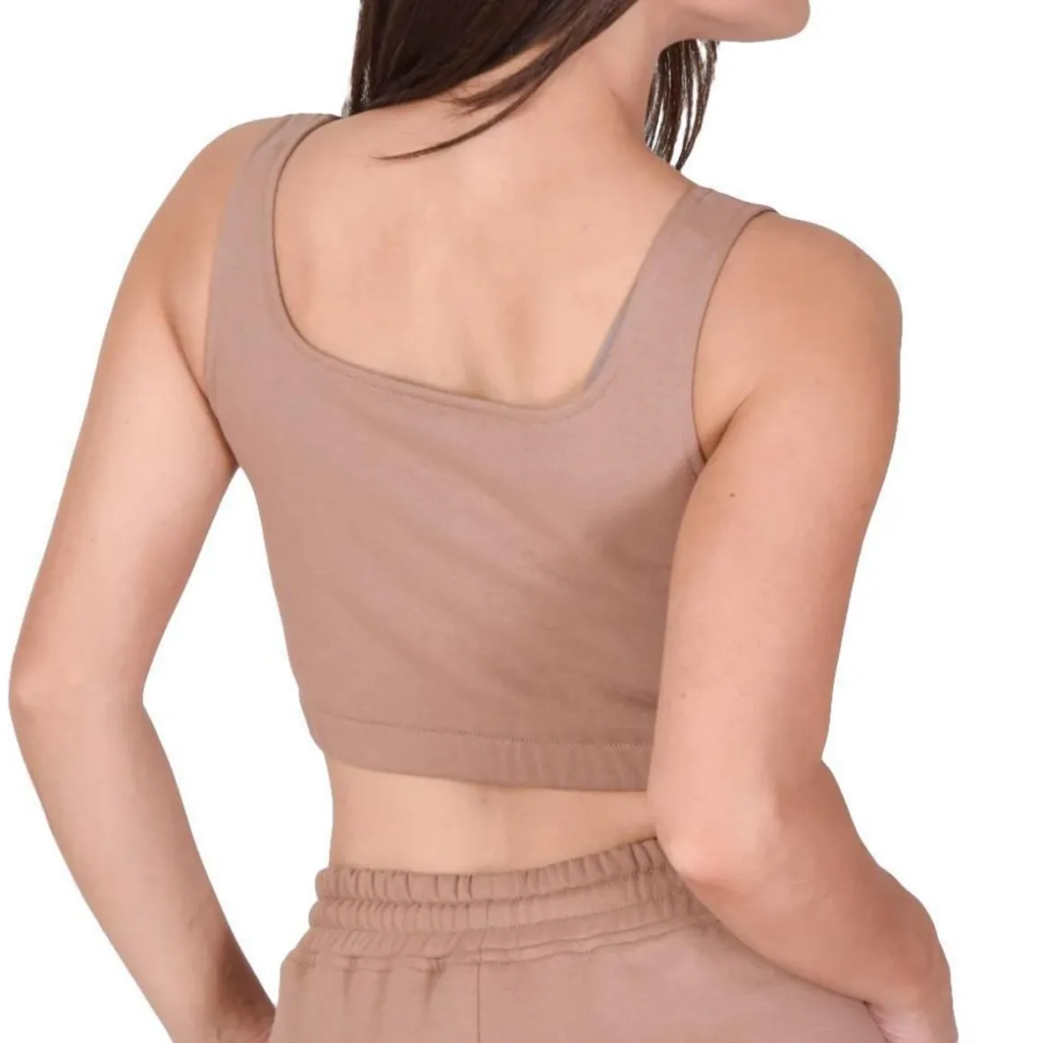 Optez pour le top femme de la marque PROJECT X PARIS !Coloris : Marron Col rond Bretelle largeFinition bas élastiqueLogo imprimé ton sur ton poitrineComposition 88%Coton,12%Polyester