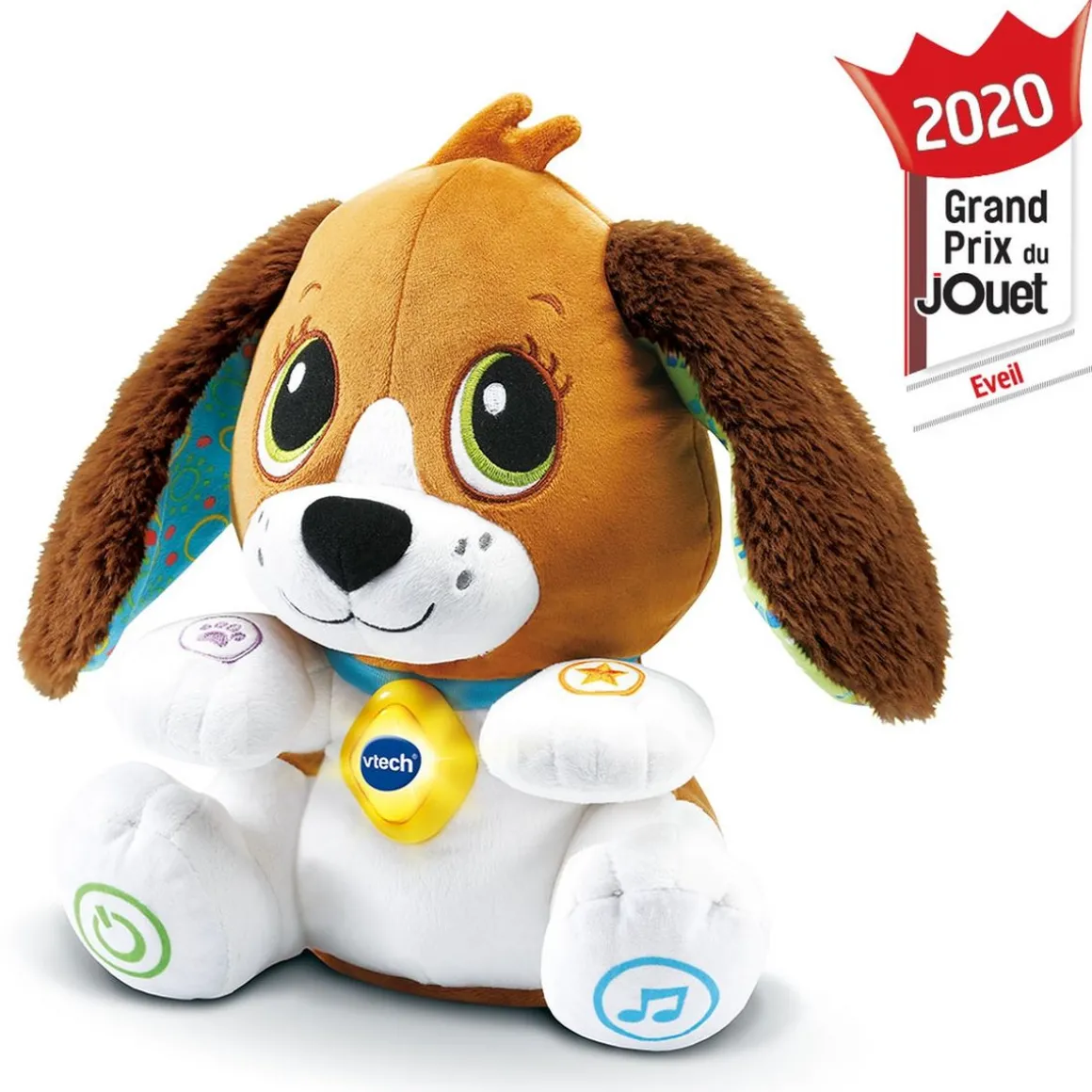 Ce chien tout doux et interactif accompagne l’enfant dans l’apprentissage du langage, des chiffres, des couleurs, des émotions et de la motricité de façon ludique.