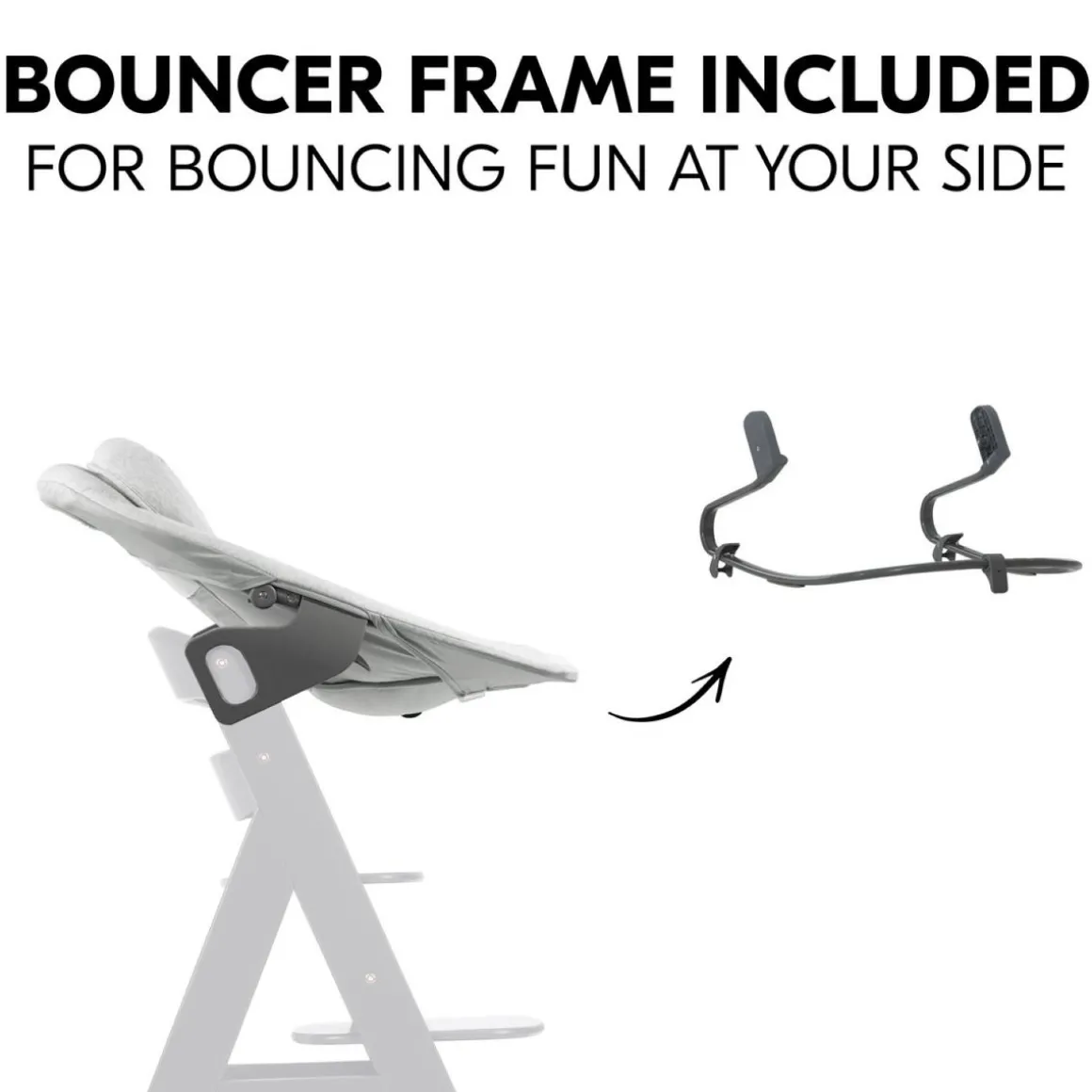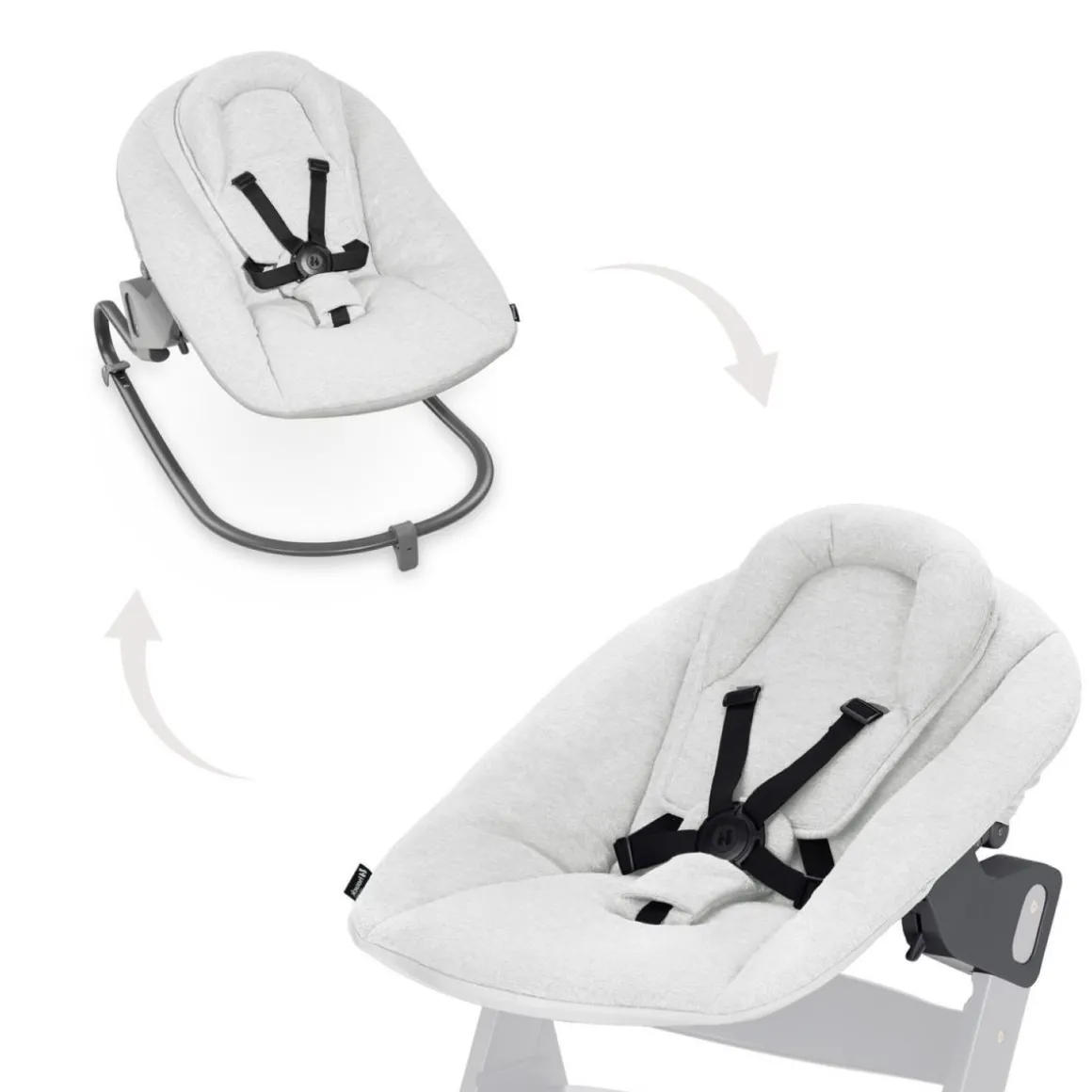 L’Alpha Baby Bouncer Premium combine un transat et un module pour chaise haute. Ainsi, votre bébé peut être à table avec vous dès la naissance. Puis se balancer doucement à côté de vous. Pour cela, cliquez le module sur la chaise haute ou sur le châssis livré.