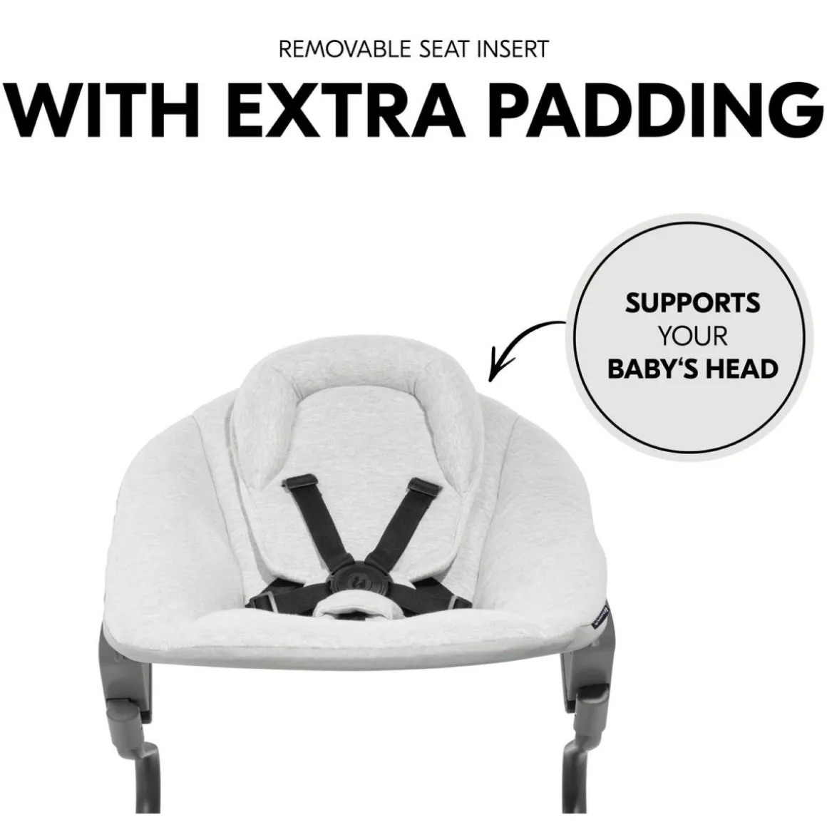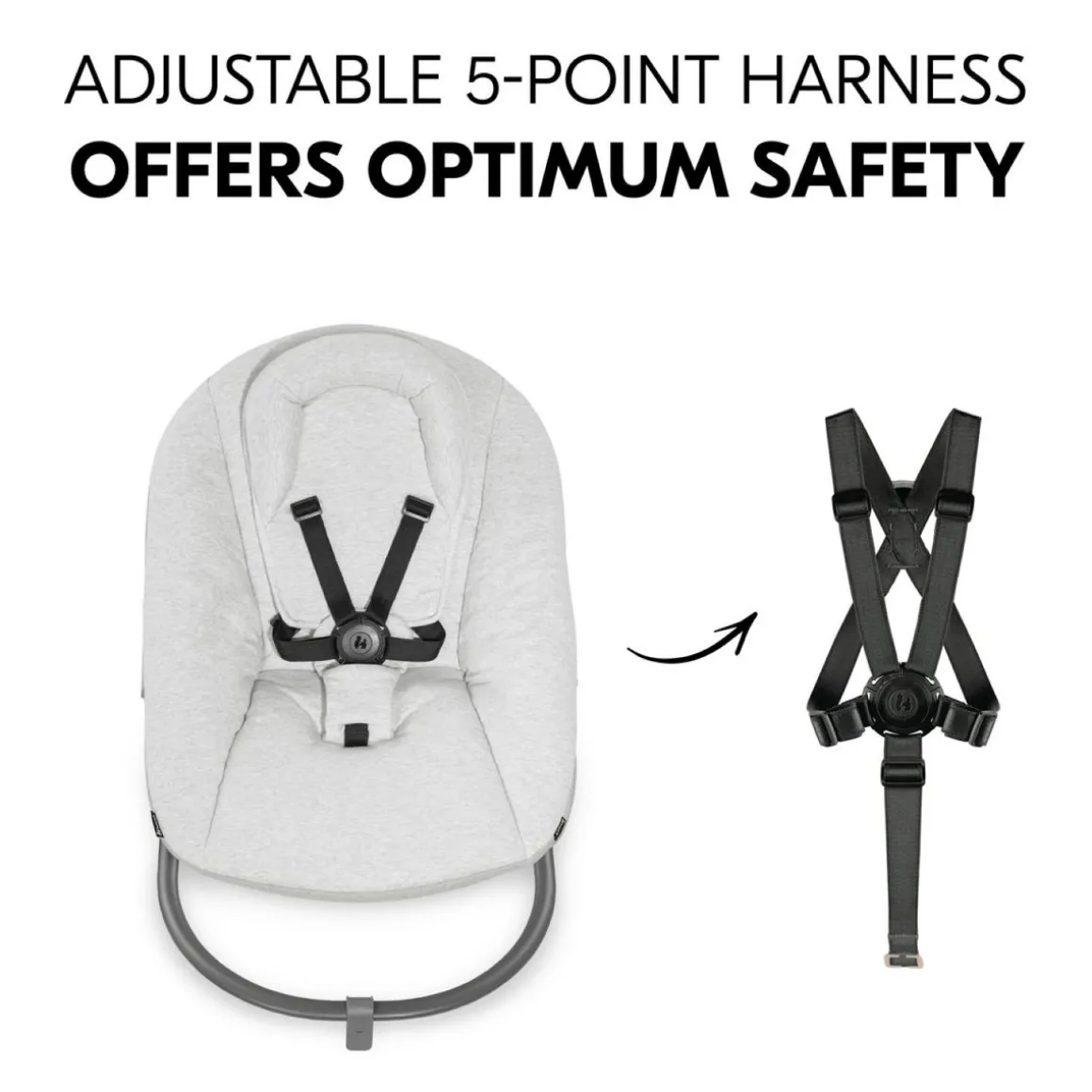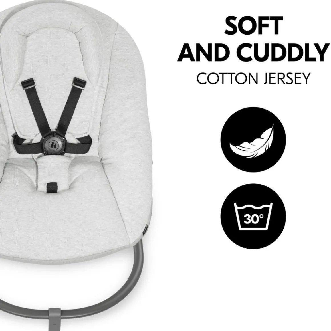 Le Alpha Bouncer Premium est le transat idéal pour que votre bébé soit à votre hauteur dès la naissance, partageant les moments à table en toute proximité. Il se combine parfaitement avec les chaises hautes Alpha+ et Beta+, offrant une solution pratique et confortable. Grâce à son harnais 5 points réglable, il s’adapte à la croissance de votre bébé, garantissant sécurité et stabilité même pour les plus actifs. Son rembourrage supplémentaire pour la tête assure confort et maintien, et peut être retiré à mesure que votre enfant grandit. Le système à clic permet un passage rapide du module transat à la chaise haute, offrant ainsi flexibilité et facilité d’utilisation. Le dossier réglable permet à votre bébé de s’asseoir pour observer son environnement ou de se coucher pour dormir. Avec sa housse en coton doux et respirant, le transat assure un confort optimal. Enfin, le balancement doux apaise votre bébé.