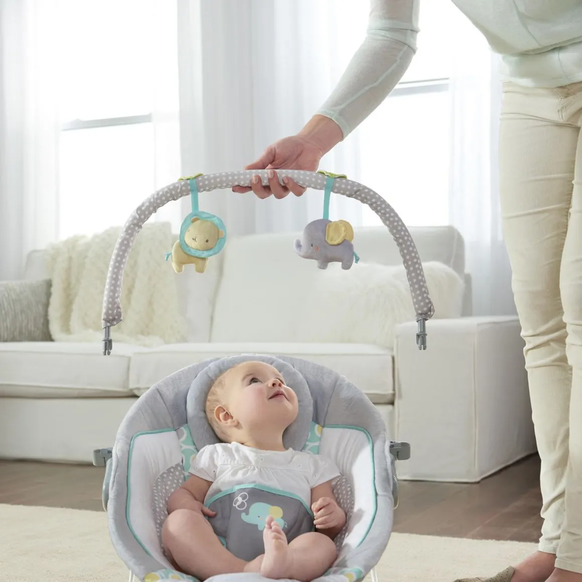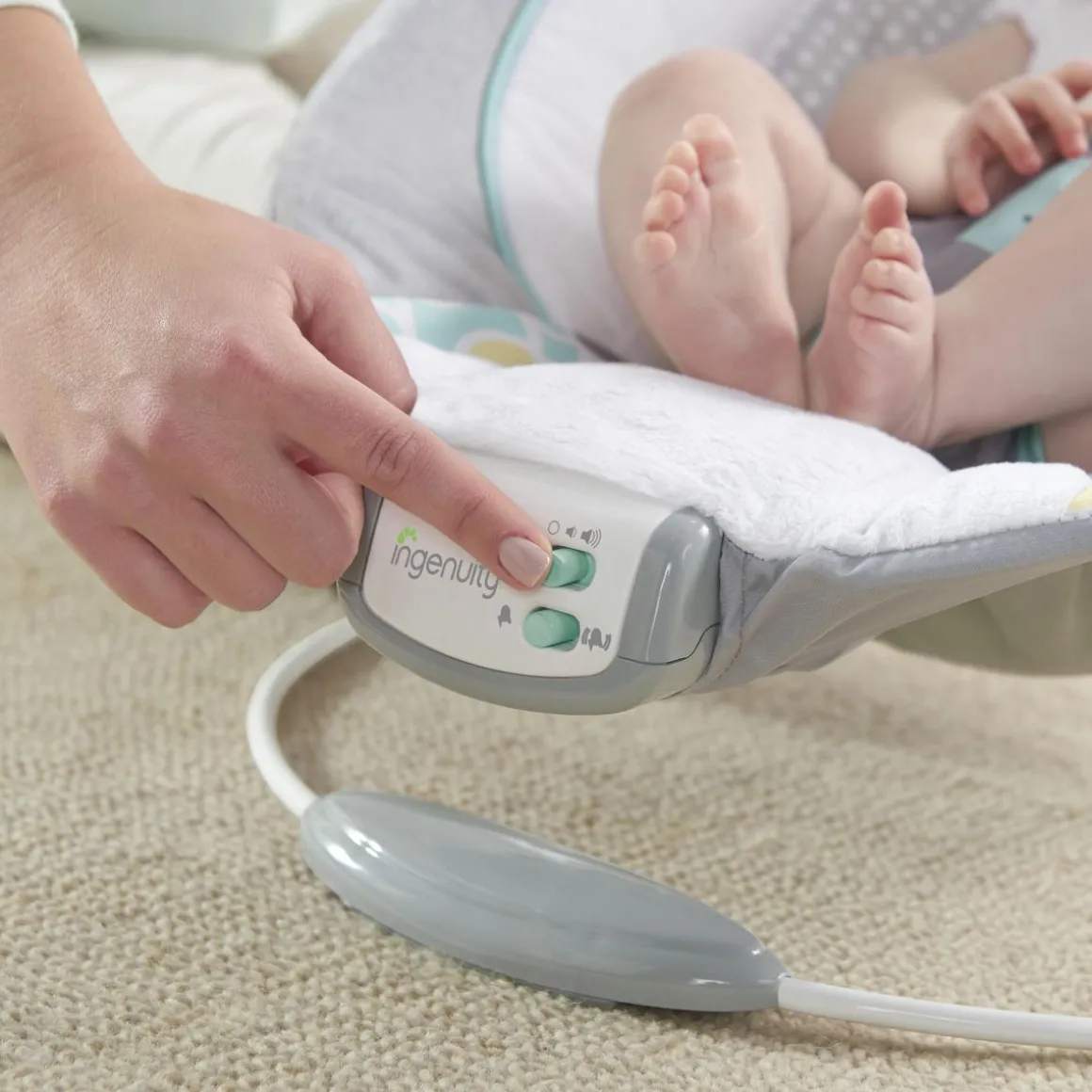 Le Transat avec Vibrations et Musique Morrison de Ingenuity™ bercera bébé dans des tissus en peluche et dans l’adorable style Morrison™. Le style Morrison™ s’accorde avec l’intérieur de n’importe quelle maison, et convient aussi bien aux petites filles qu’aux petits garçons. Bébé va adorer écouter 7 mélodies et profiter d’un bon moment de détente grâce aux vibrations apaisantes. Le siège est pourvu d’un coussin de protection pour les pieds et d’un appuie-tête pour renforcer la sécurité qui peuvent se retirer lorsque le bébé grandit. La barre d’activités présente deux adorables jouets en peluche et se retire d’une seule main pour accéder facilement à bébé. Utilisez les réglages du volume et arrêt automatique pour ajuster le volume de la musique. Quand bébé a un peu trop bavouillé, passez le tissu à la machine à laver. Harnais de sécurité à 3 points de fixation et pieds antidérapants pour garder bébé en toute sécurité.