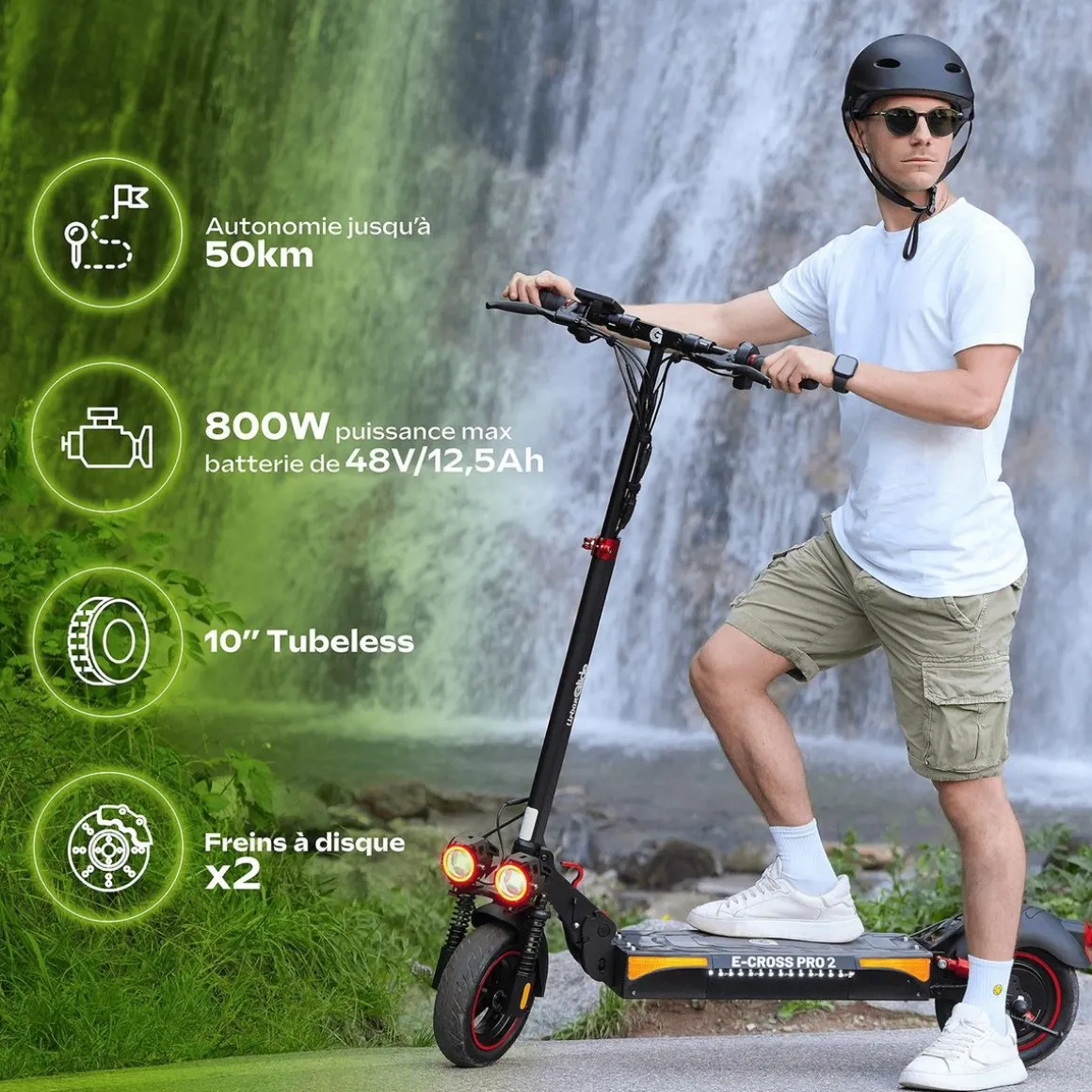 La vitesse et l’autonomie varient selon le terrain, la vitesse et le poids de l’utilisateur.
