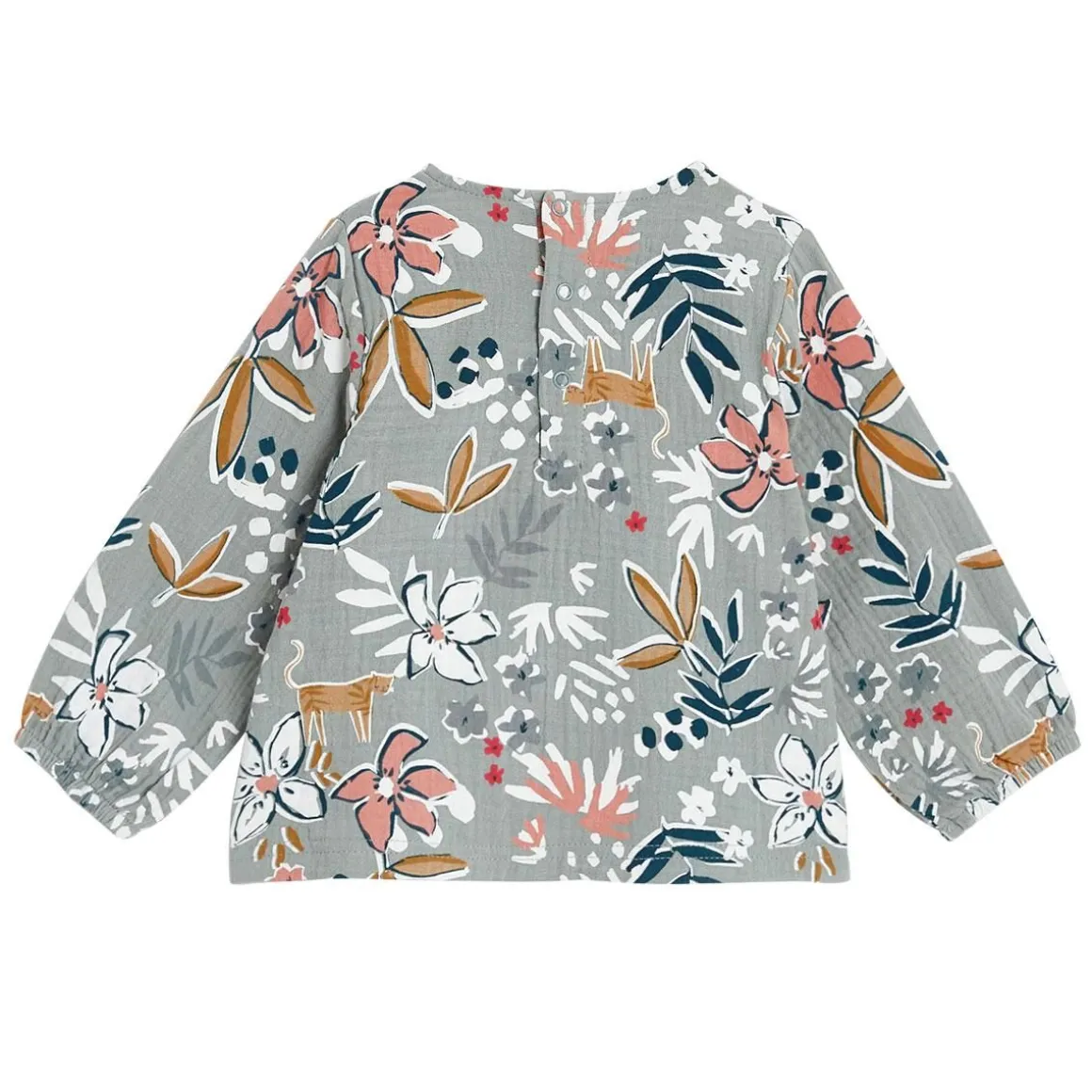 COUP DE CŒUR ! Comment résister à tant de poésie et de douceur ? Craquez pour cette jolie blouse à manches longues en gaze de coton et son imprimé coloré sur fond bleu doux ! Une matière gaze de coton toute douce