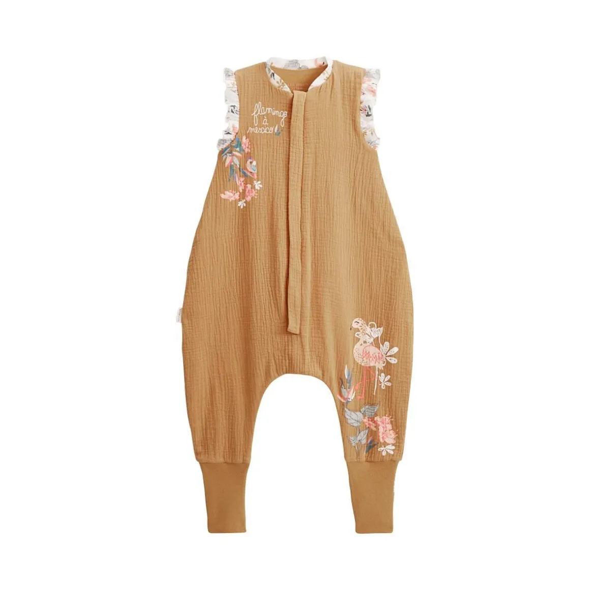 Voici l’incontournable pour les petits aventuriers qui explorent tout en désirant le confort. Notre turbulette Flamingo débarque dans un magnifique coloris ocre, accompagné de son fidèle compagnon flamant rose, prêt à suivre bébé partout. On craque pour sa matière en gaze de coton, à la fois douce et légère, parfaite pour assurer le bien-être de votre tout-petit. Produit labellisé STANDARD 100 by OEKO-TEX ® (BJ020 189402 TESTEX) 2-en-1 : allongé les pieds rentrés, debout les pieds sortis ! Ouverture passe-pieds, parfait pour permettre à bébé de faire ses premiers pas Ouverture zippée sur l’avant avec patte de protection Pieds antidérapants En coton gaufré tout doux et confort Indice de chaleur : TOG 1 Pour plus d’informations, voir les avertissements et recommandations dans l’onglet détails et entretien *Cet article taille grand, nous vous conseillons de prendre au minimum une taille en dessous.