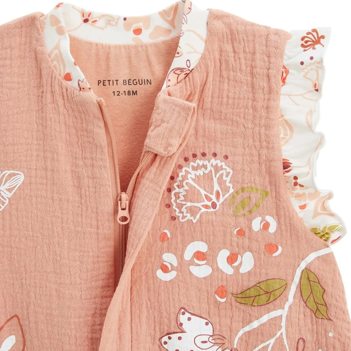 Prête pour des petits pas tout doux avec la turbulette Mindanao en coton gaufré ! Ses pieds retroussables permettent à bébé de marcher ou de jouer en toute liberté, tout en gardant ses petits pieds bien au chaud quand c’est l’heure de dormir. Légère et confortable, elle est parfaite pour les journées actives et les nuits paisibles. On craque pour ses volants adorables sur les épaules et son imprimé fleuri accompagné d’un kangourou tout rigolo. Produit labellisé STANDARD 100 by OEKO-TEX ® (BJ020 189402 TESTEX) 2-en-1 : allongé les pieds rentrés, debout les pieds sortis ! Ouverture passe-pieds, parfait pour permettre à bébé de faire ses premiers pas Ouverture zippée sur l’avant avec patte de protection Pieds antidérapants En coton gaufré tout doux et confort Indice de chaleur : TOG 1 Pour plus d’informations, voir les avertissements et recommandations dans l’onglet détails et entretien