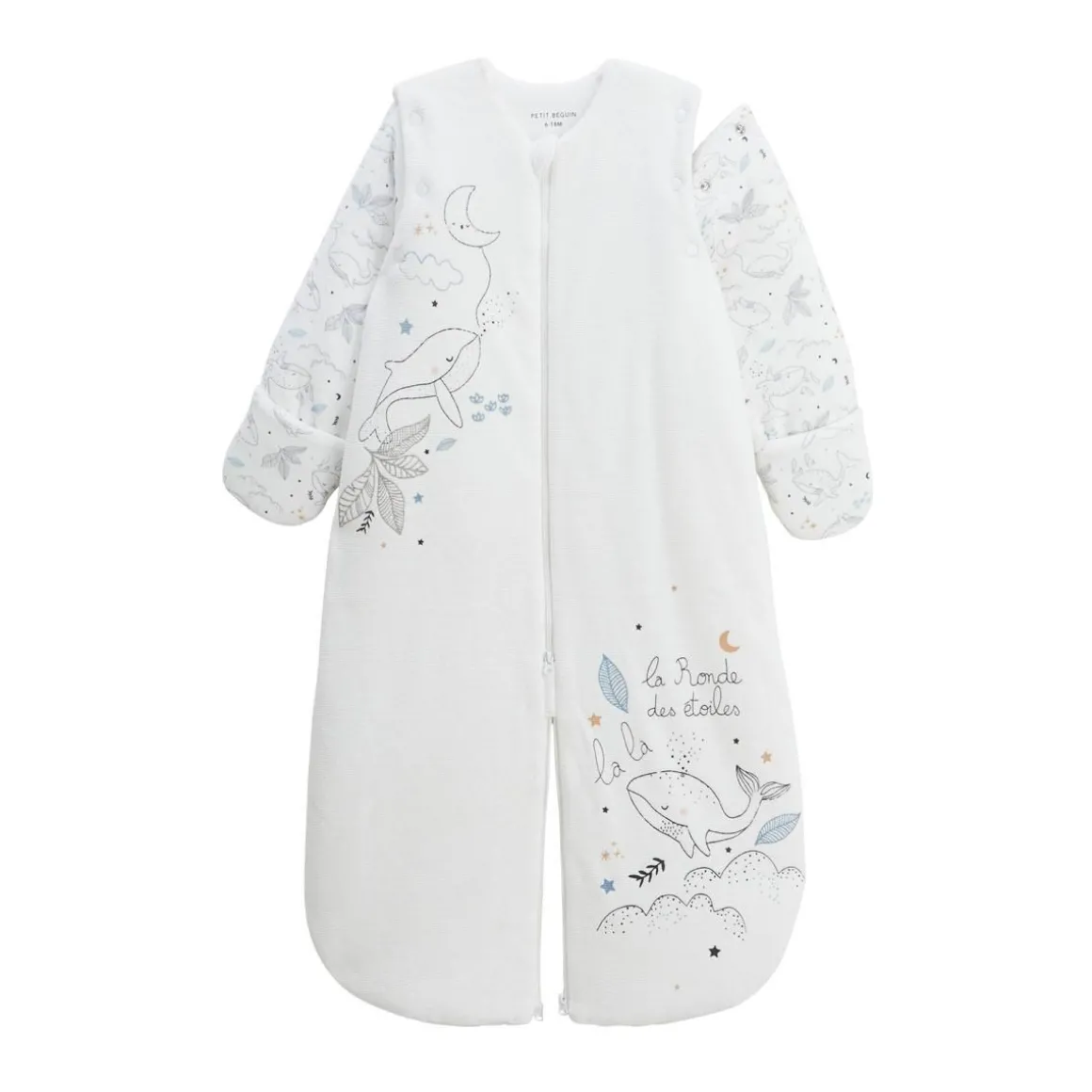 Une turbulette bien chaude pour protéger bébé du froid. En velours, TOG 3 et avec des moufles intégrés, on a prévu le coup ! On craque aussi pour sa double fonctionnalité : aussi bien dans le lit que dans la voiture, cette turbulette a une ouverture spéciale pour faire passer la ceinture, on adore ! Produit labellisé STANDARD 100 by OEKO-TEX ® (BJ020 189402 TESTEX) Système de double zip pour séparer les jambes : parfaite pour le siège-auto et la poussette ! Manches longues amovibles par pressions Moufles intégrées pour plus de maintien au chaud En velours tout doux pour l’hiver Indice de chaleur : TOG 3 Pour plus d’informations, voir les avertissements et recommandations dans l’onglet détails et entretien