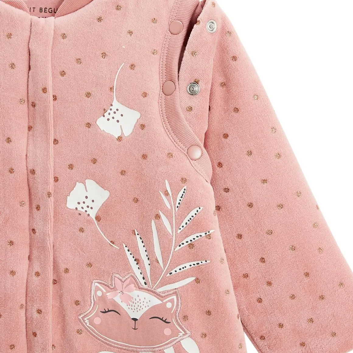 En velours, douillette et chaude, notre turbulette est de nouveau là ! Avec ses manches amovibles et ses pieds retroussables, elle sera idéale pour que bébé gambade comme un grand ! On craque pour sa jolie couleur rose et ses pois dorés. Produit labellisé STANDARD 100 by OEKO-TEX ® (2309200 CENTEXBEL) 2-en-1 : allongé les pieds rentrés, debout les pieds sortis ! Pieds antidérapants : trop pratique Manches longues amovibles par pressions Ouverture zippée sur toute la longueur avec patte de protection Ouverture passe-pieds rabattable, parfaite pour garder les pieds de bébé bien au chaud ou lui permettre de faire ses premiers pas ! Indice de chaleur : TOG 3 Pour plus d’informations, voir les avertissements et recommandations dans l’onglet détails et entretien