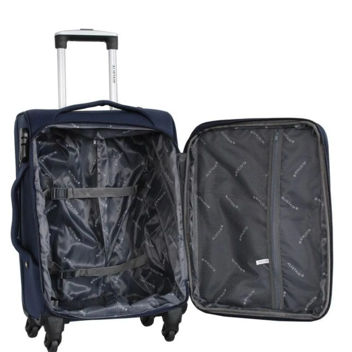 – [ERGONOMIE] Quatre roues multidirectionnelles assurant une maniabilite et une stabilite au bagage / Se transporte a l’aide de deux poignees (en toile), une au-dessus et l’autre sur le cote – Poignee telescopique – Extension zippee pouvant agrandir la valise de 15% et cadenas a combinaisons 3 chiffres inclus sur le cote de la valise – Un grand compartiment de rangements internes �quip� de bretelles ajustables pour stabiliser vos affaires, avec 2 poches zipp�es � l�avant.