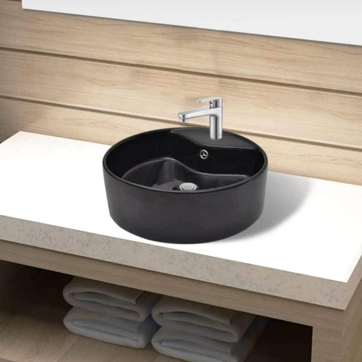 Ce vasque artistique en ceramique est plus qu’un simple recipient pratique pour une utilisation quotidienne, mais c’est egalement un ornement pour votre interieur. Il conviendra a tout style d’interieur. Ajoutez a cela que l’evier est assez facile a nettoyer. Le trou a robinet est 3,5 cm pour une insallation de robinet. Le trou de l’egouttoir est de 4,5 cm de diametre.