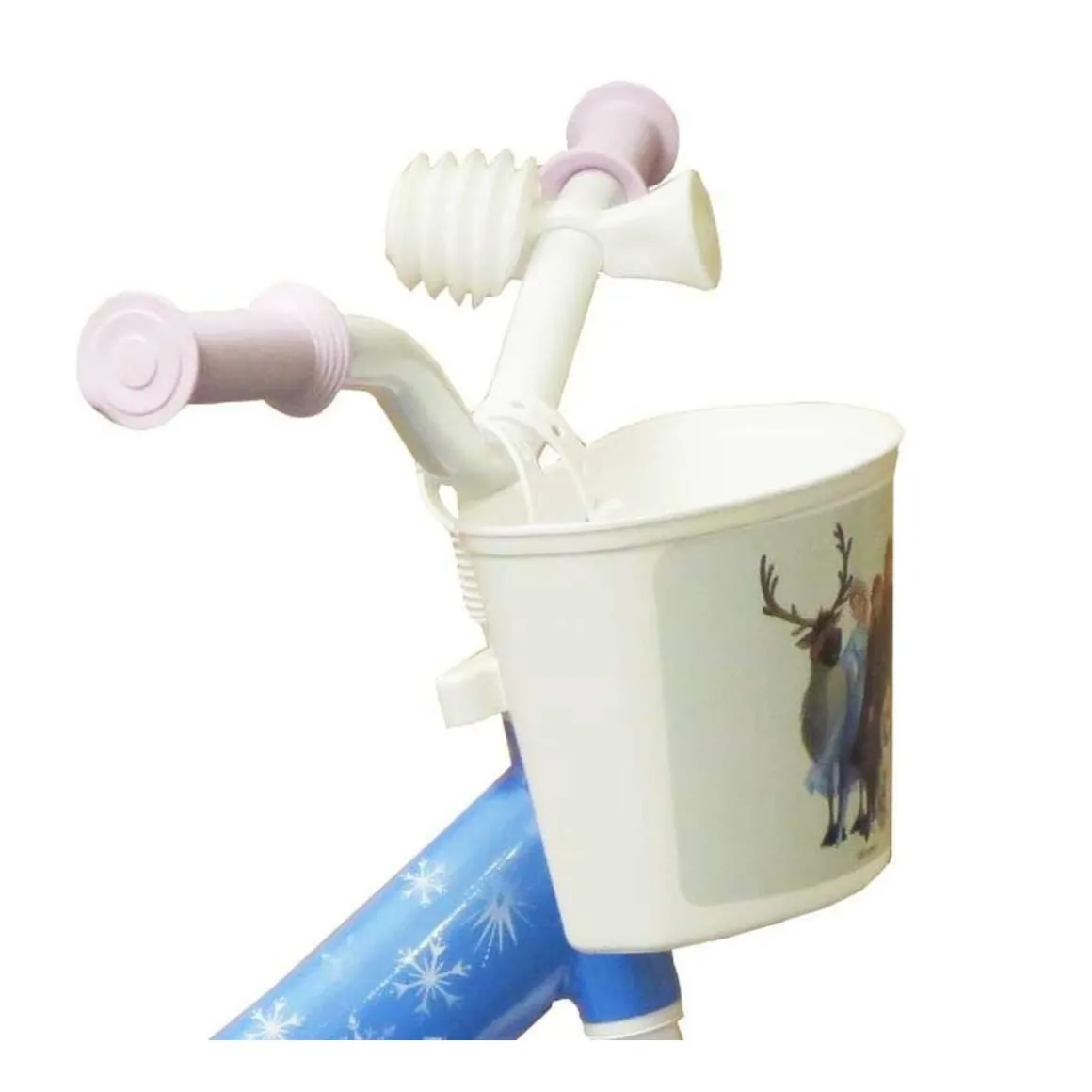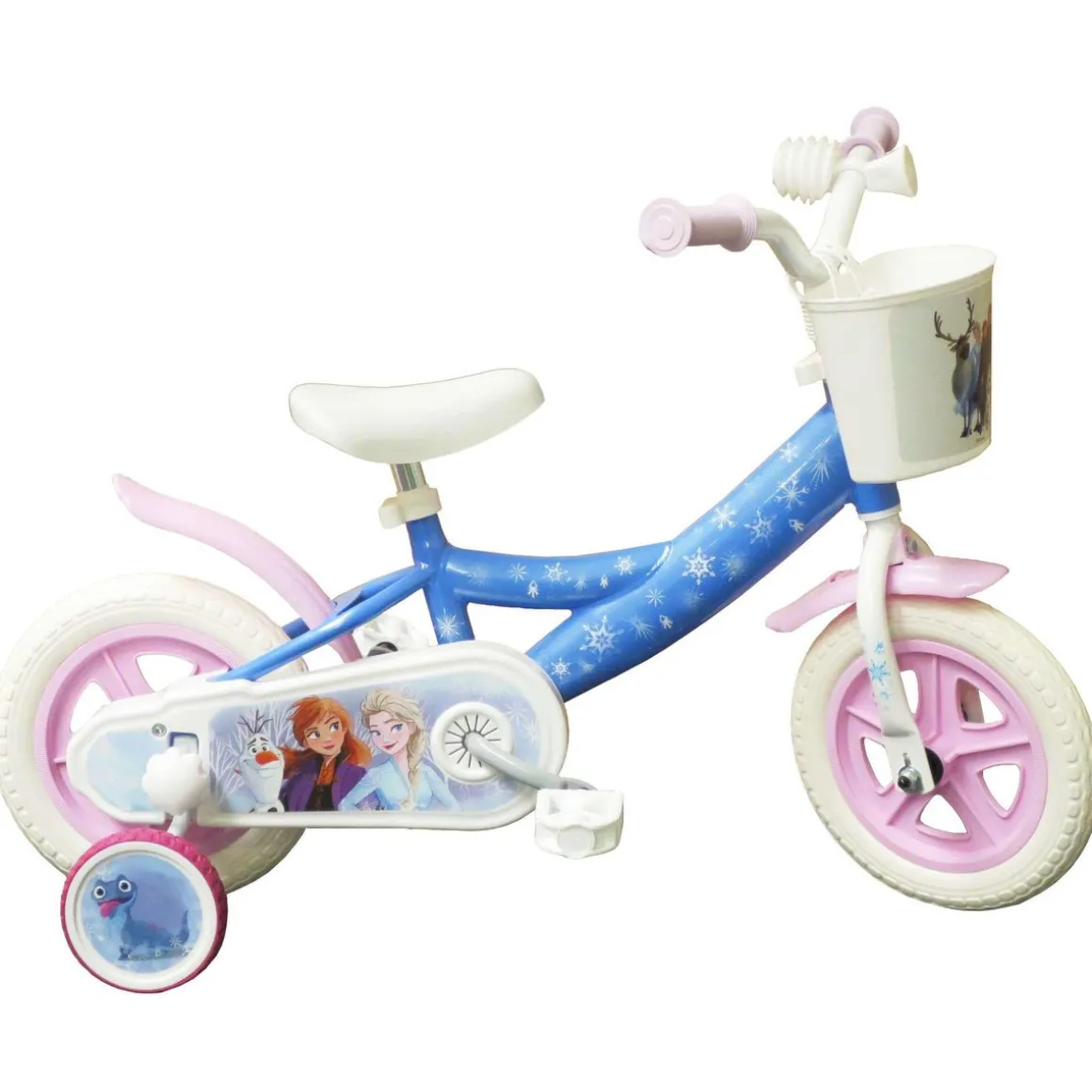 Vélo 10 » Fille Licence Reine des neiges pour enfant de 75/90 cm avec stabilisateurs à molettes – Panier avant – Sans frein et roues à bâtons