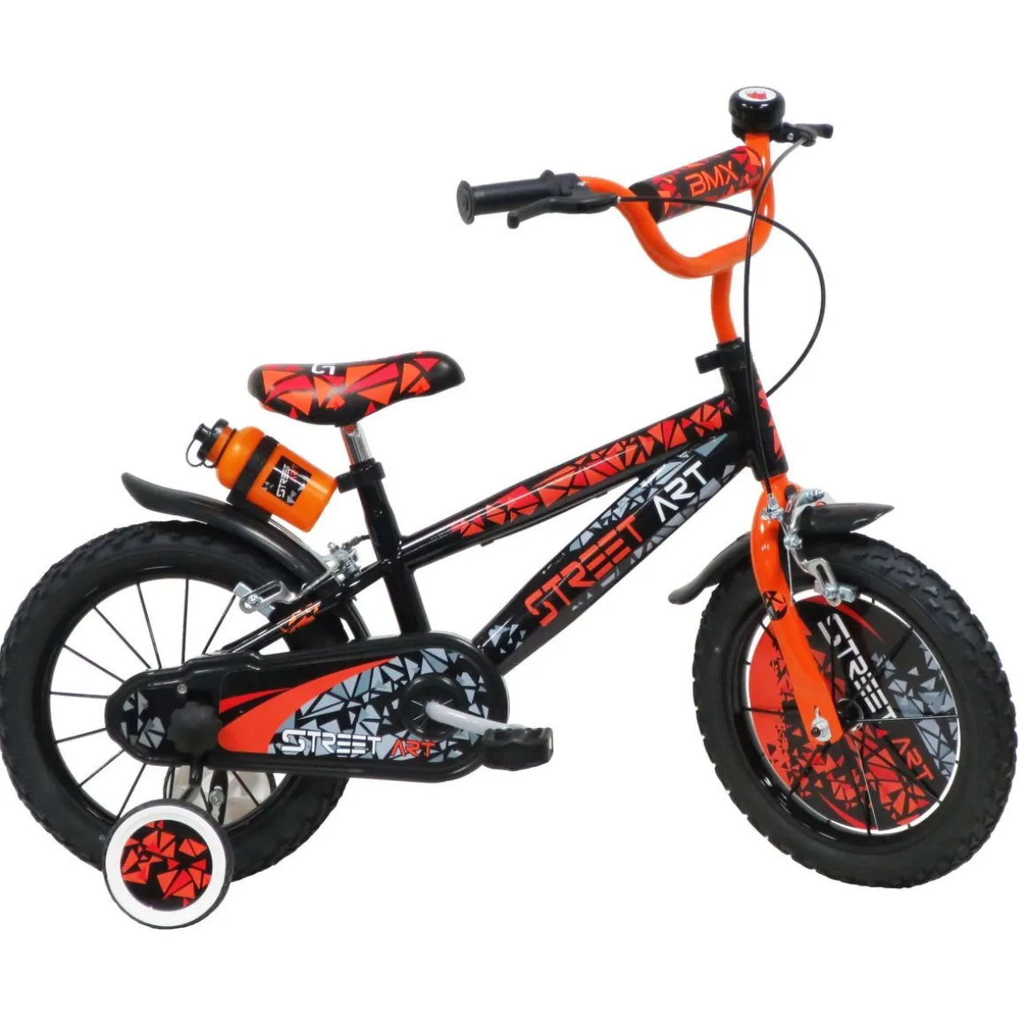 Vélo 14 » Garçon Street Art pour enfant de 95/110 cm avec stabilisateurs à molettes – Plaque décorative avant – Porte bidon – 2 freins