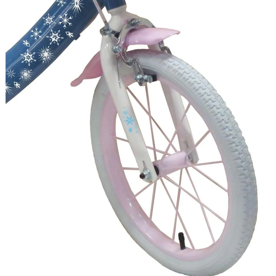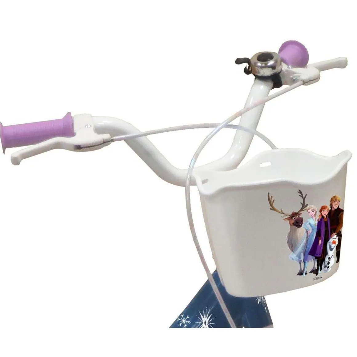 Vélo 16 Fille Licence Reine des Neiges + Casque pour enfant de 105/120 cm – Cadre Acier surbaissé pour enjambement aisé – Direction et pédalier en nylon – Roue libre monovitesse – Freins avant et arrière Calliper – Selle réglable – Carter de chaîne intégral – Gardes boue et poignées spécifiques pour augmenter la protection de l’enfant – Jantes à rayons – Pneus gonflables blancs – Stabilisateurs (montage sans outil) – Panier avant – Porte-poupée arrière – Avertisseur sonore – Eclairage à piles fournies – Catadioptres de roues