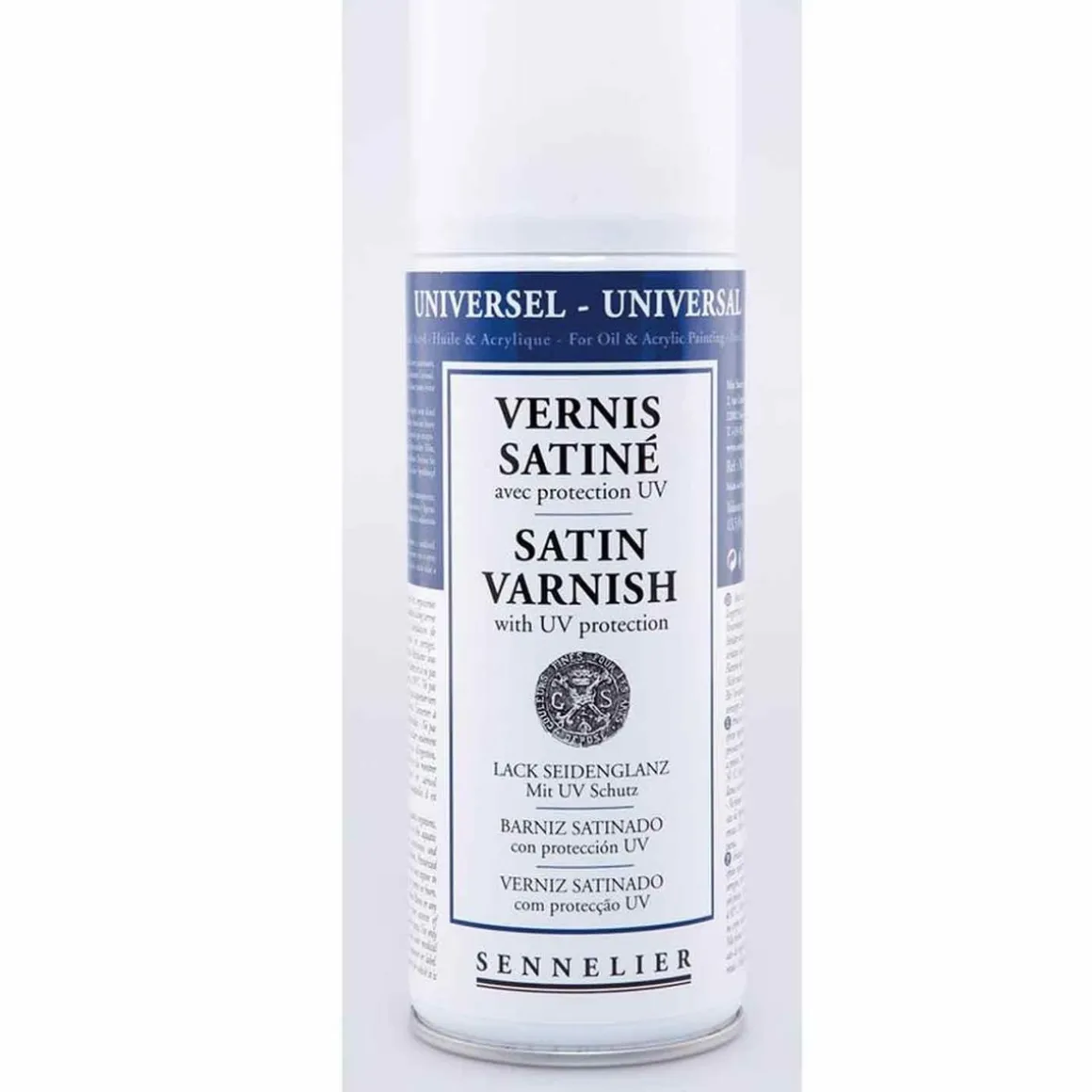 Vernis satiné en spray 400 ml. Il offre une protection UV et un séchage rapide en quelques heures pour une finition satiné de vos projets. Ce vernis est particulièrement transparent et non jaunissant. La protection UV permet de prolonger l’effet protecteur du vernis des aléas du temps et de la lumière. Vernis final à base de résine de synthèse, intermédiaire entre le vernis brillant et le vernis mat. Séchage rapide (quelques heures de séchage suffisent pour obtenir un aspect définitif). Film incolore et satiné, non jaunissant et très résistant. Rendu transparent et sans reflet, parfaitement régulier. Difficilement réversible. S’applique sur une peinture parfaitement sèche. Diluant unique : essence de Térébenthine.