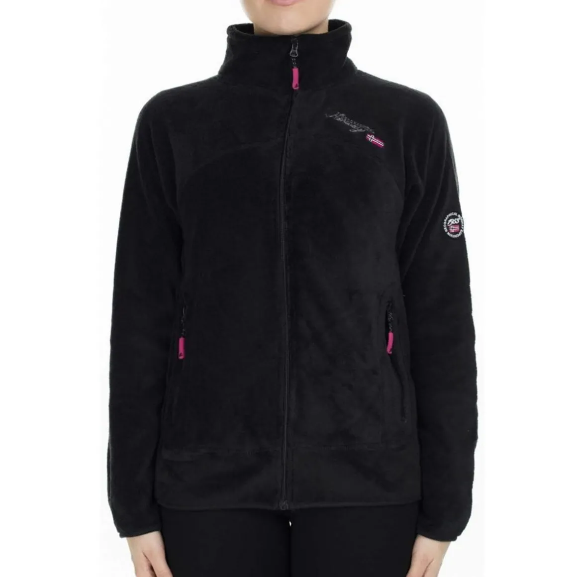 Veste polaire pour femme de la marque Geogrpahical Norway, en coloris noir. Broderie sur la poitrine Polaire tout doux 2 poches zippées Logo brodé en bas du bras Écusson en PVC sur le haut de la manche Composition : 100% polyester