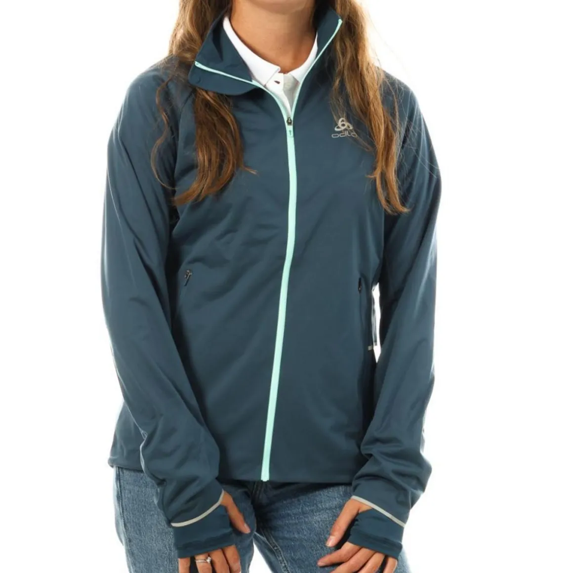 Craquez pour la veste de la marque ODLO Coloris : BleuCol montant Manches manches Logo sur la poitrine Zip de fermeture Composition : 100% Polyester